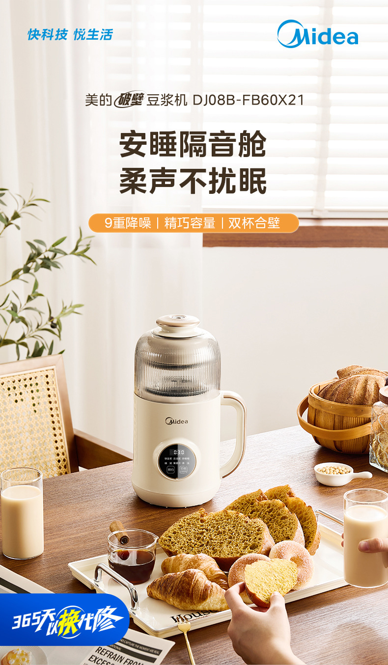 가정용 기숙사용 Midea 수면 벽 파괴 기계, 완전 자동 두유 기계, 가벼운 소리, 잔류물 없음, 소형 요리 및 주스 추출기스토어 가기