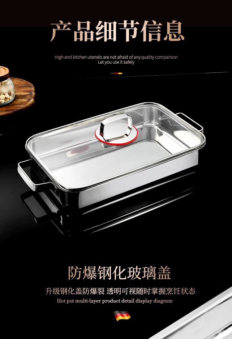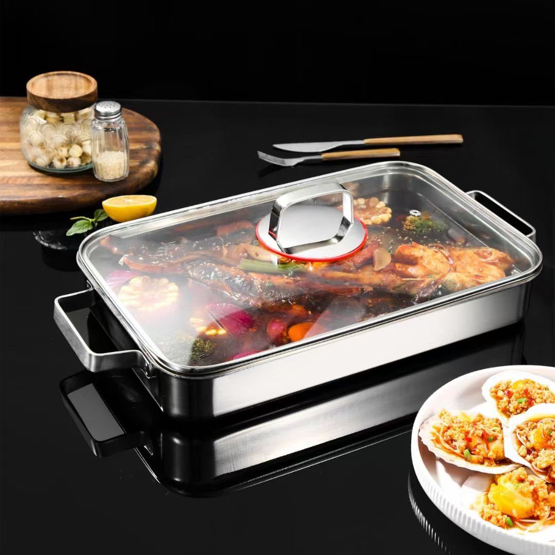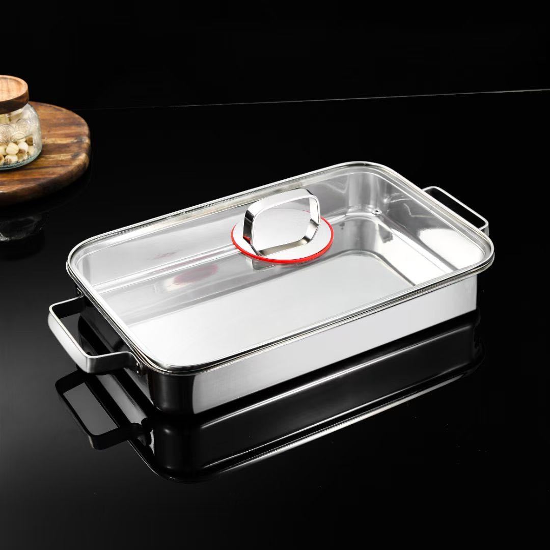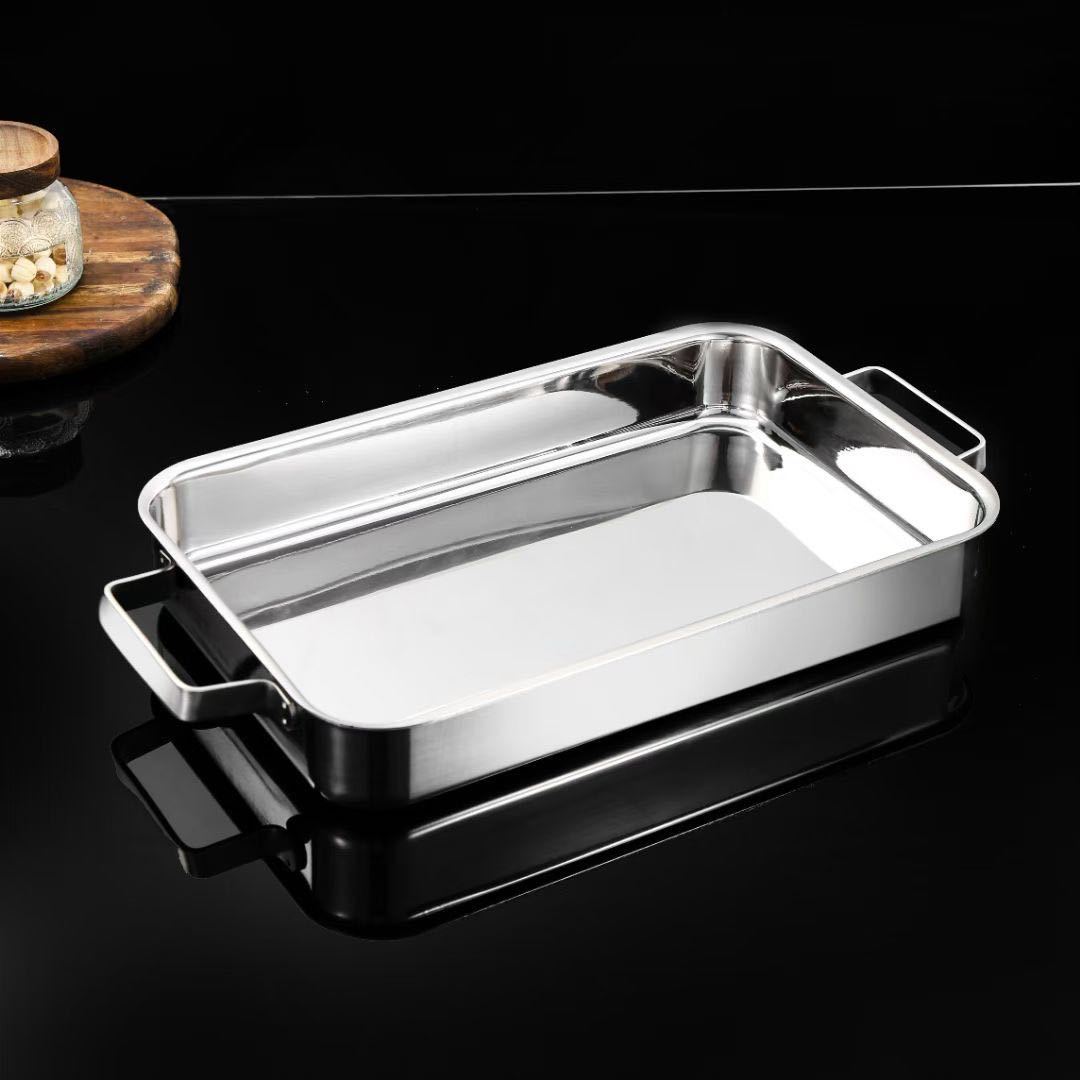 304 3층 강철 생선 구이 접시 직사각형 가정용 두꺼운 전자 레인지 냄비 식품 등급 깊은 접시 구이 접시 트레이