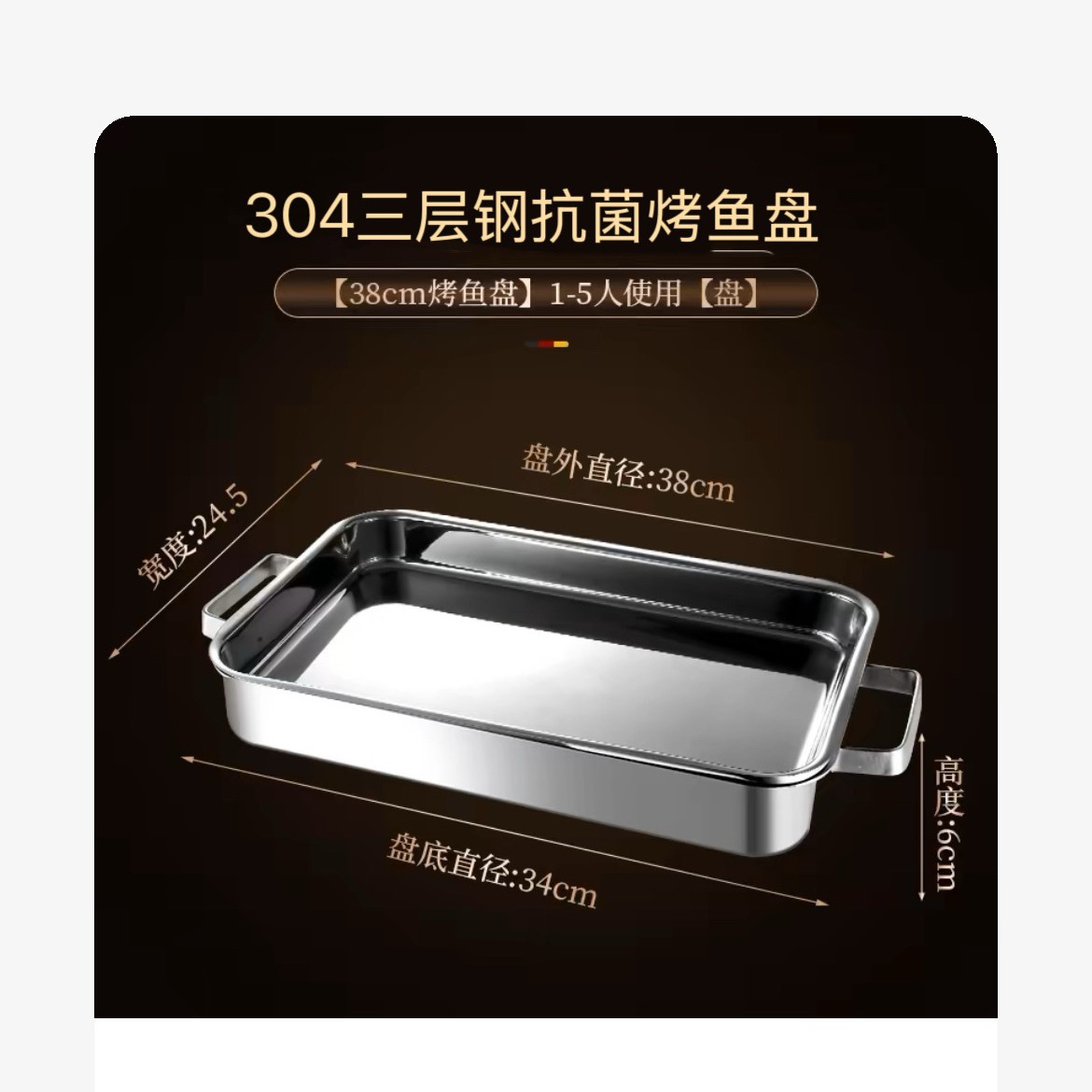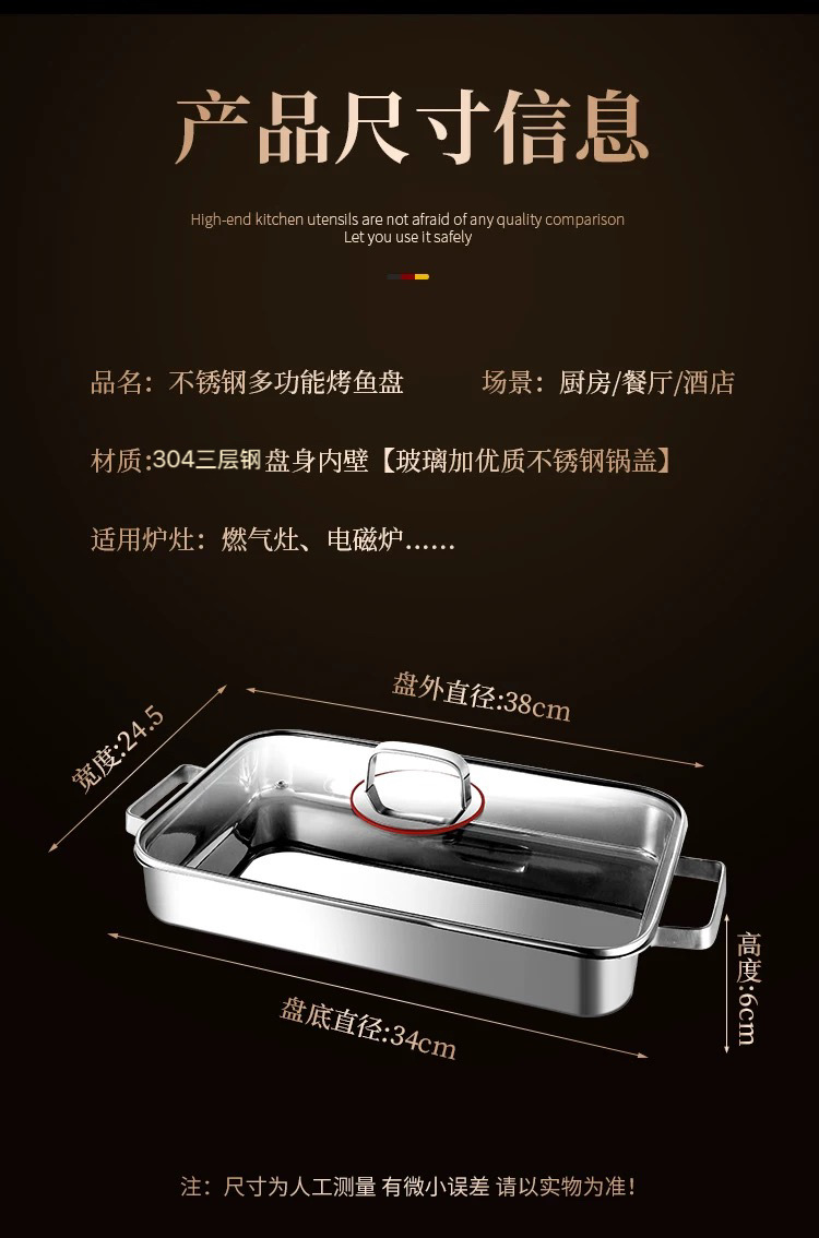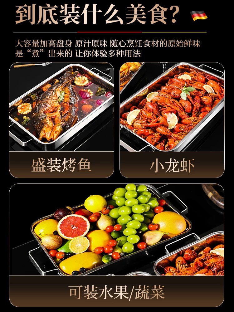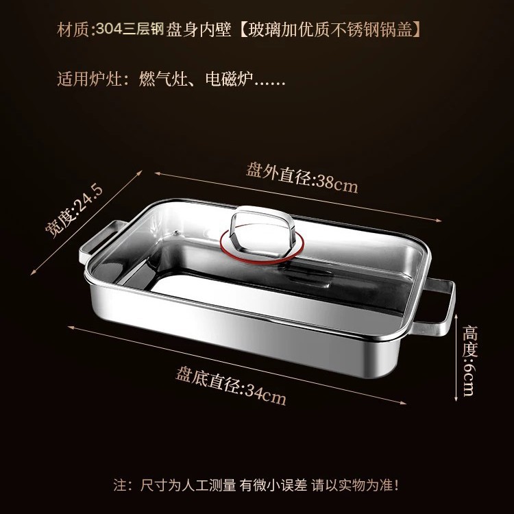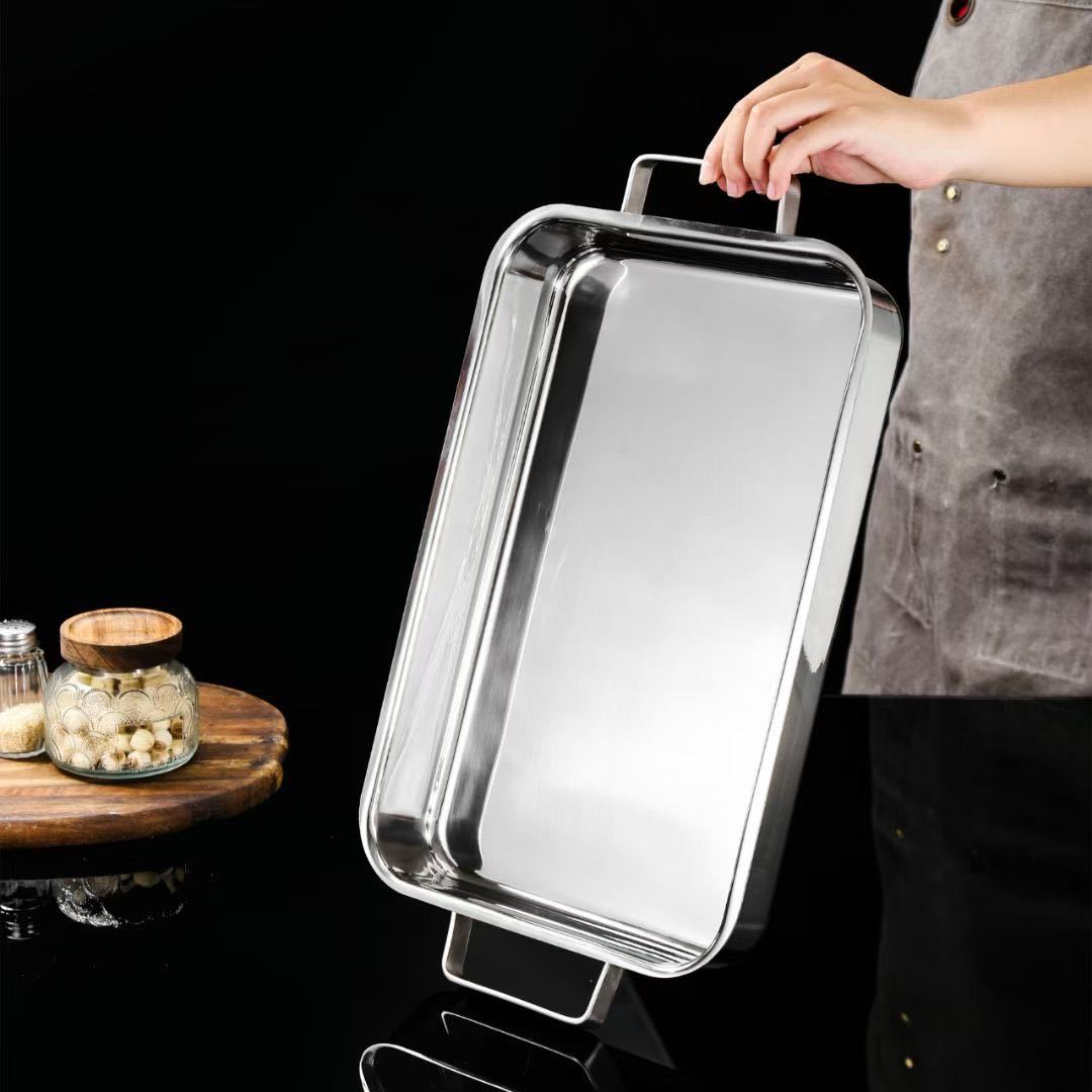 304 3층 강철 생선 구이 접시 직사각형 가정용 두꺼운 전자 레인지 냄비 식품 등급 깊은 접시 구이 접시 트레이스토어 가기