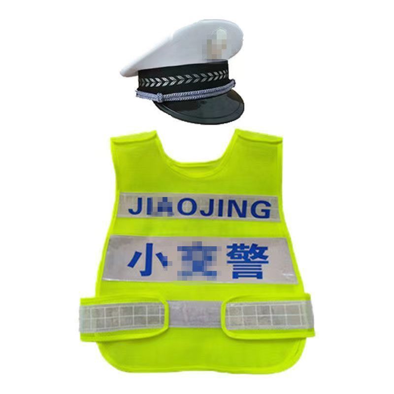 어린이 작은 경찰 반사 조끼 캠퍼스 코스프레 소년과 소녀 큰 모자 반사 조끼 소방 공연 의류스토어 가기
