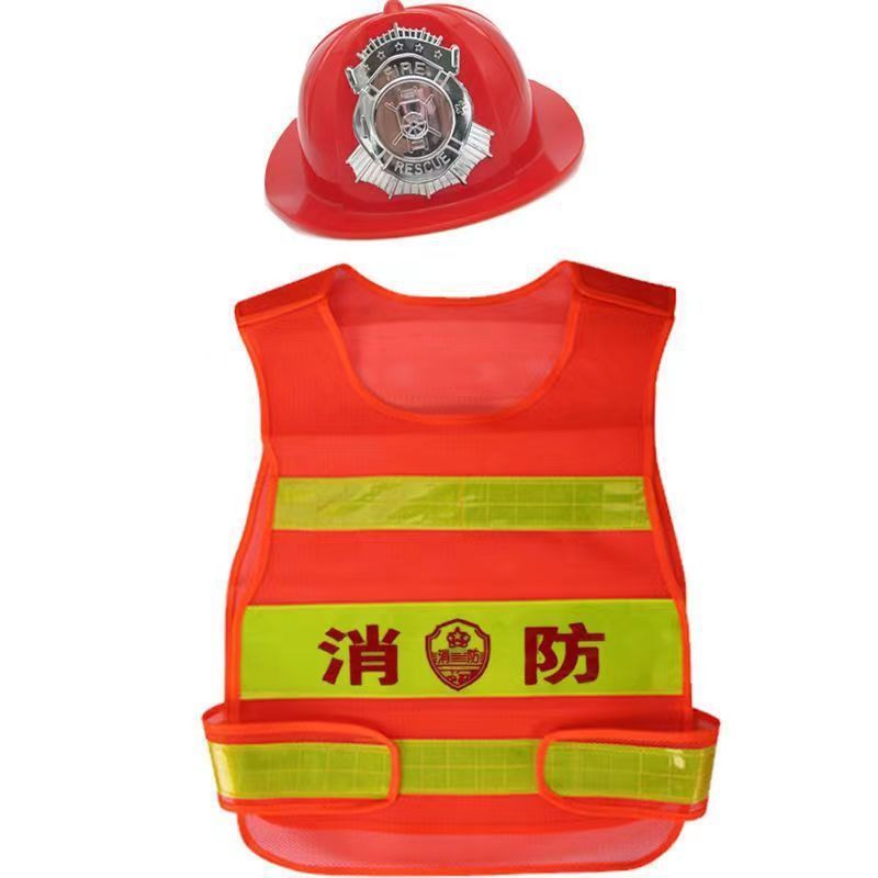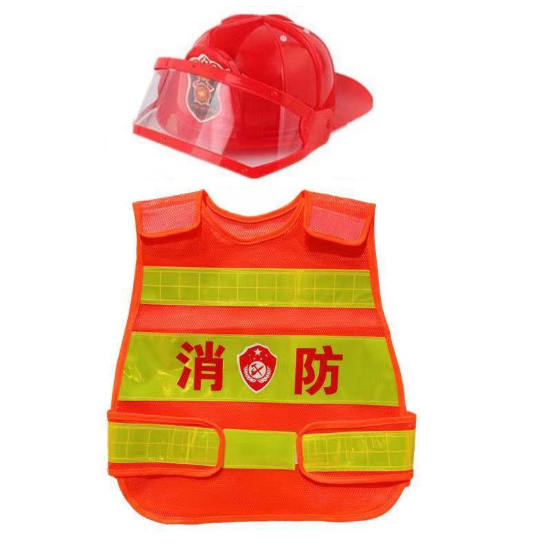 어린이 작은 경찰 반사 조끼 캠퍼스 코스프레 소년과 소녀 큰 모자 반사 조끼 소방 공연 의류