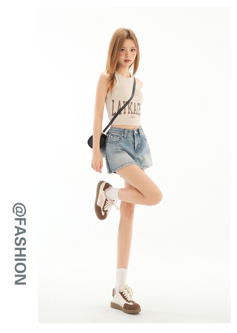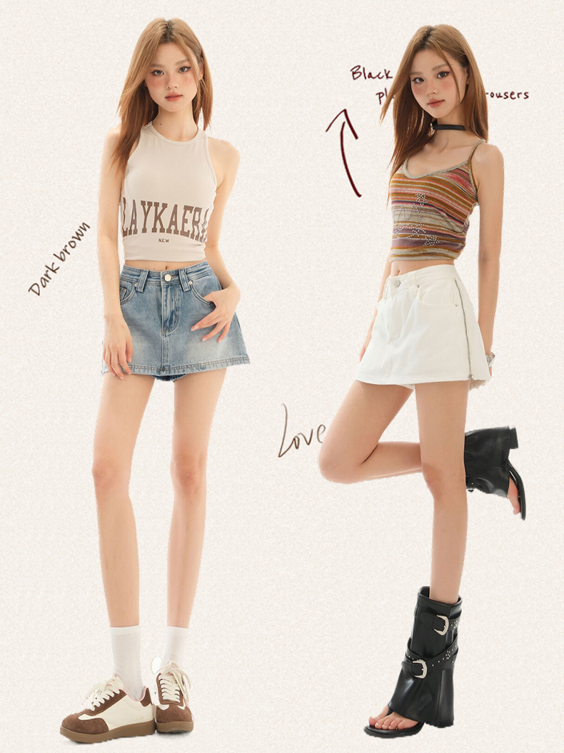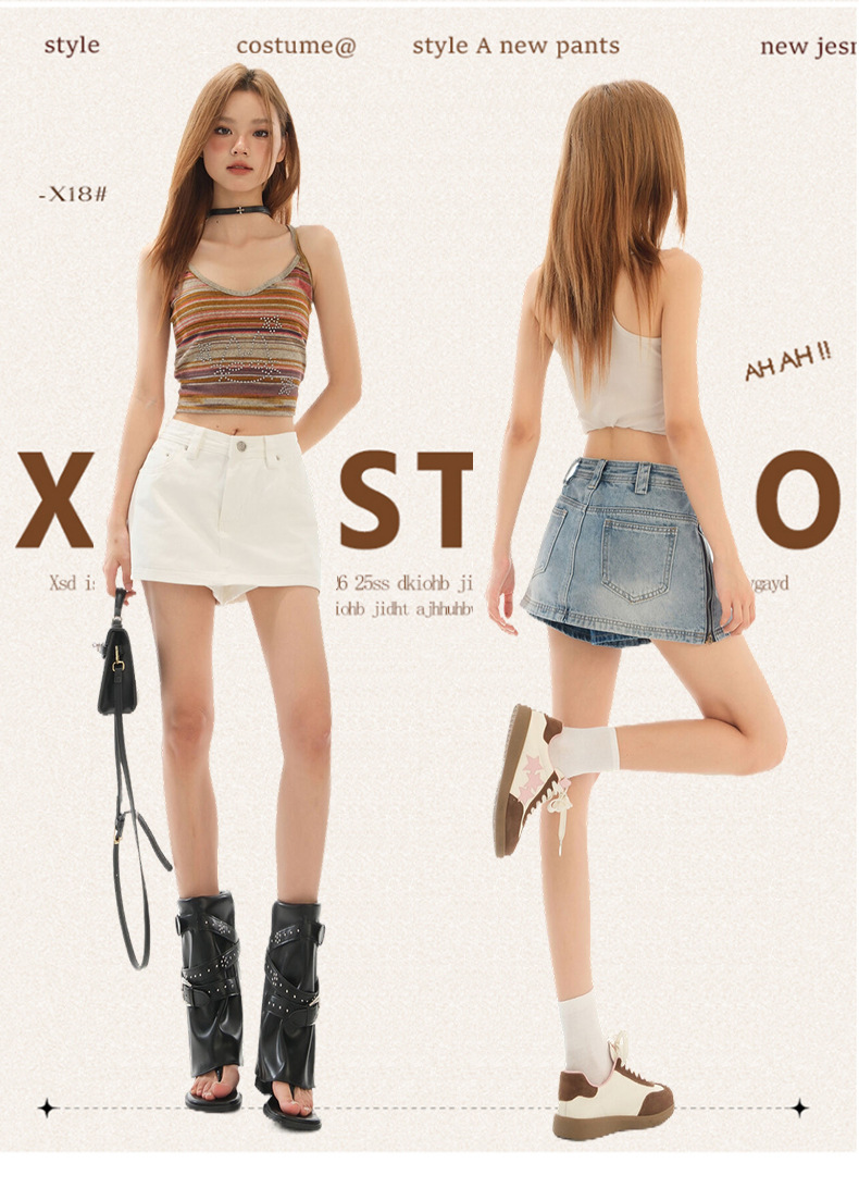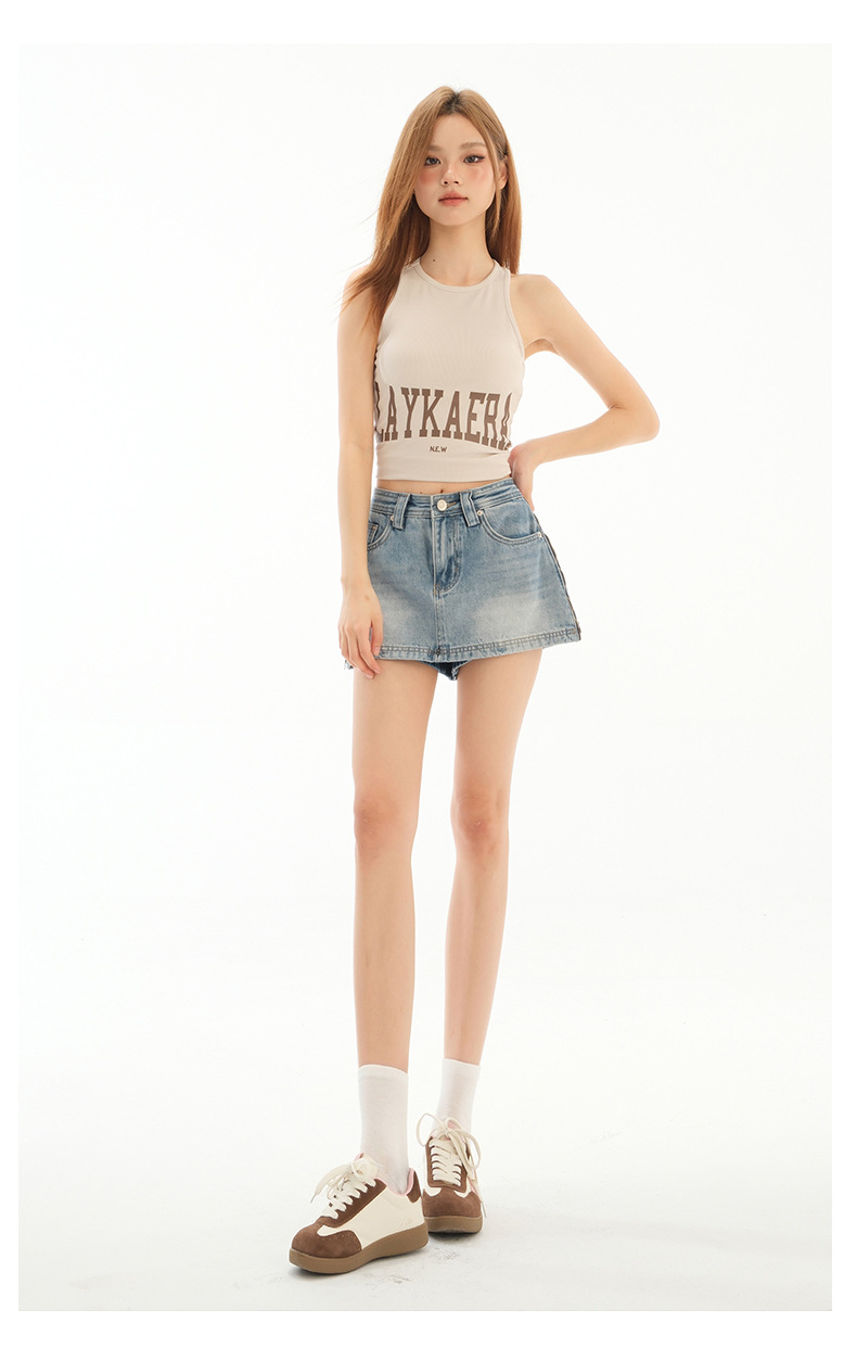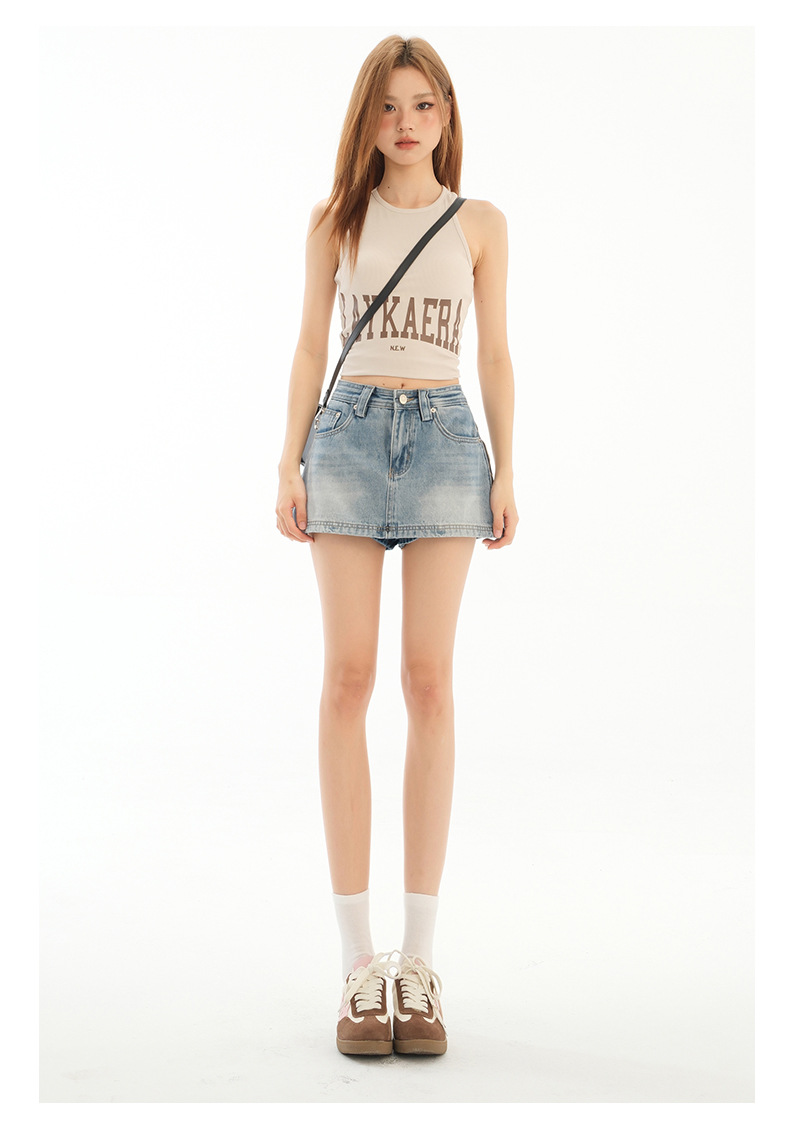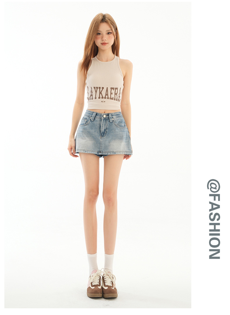 블루 데님 스커트 여성의 2025 여름 사이드 지퍼 안티 라이트 디자인 슬림 룩 스파이스 소녀 외부 착용 컬롯스토어 가기