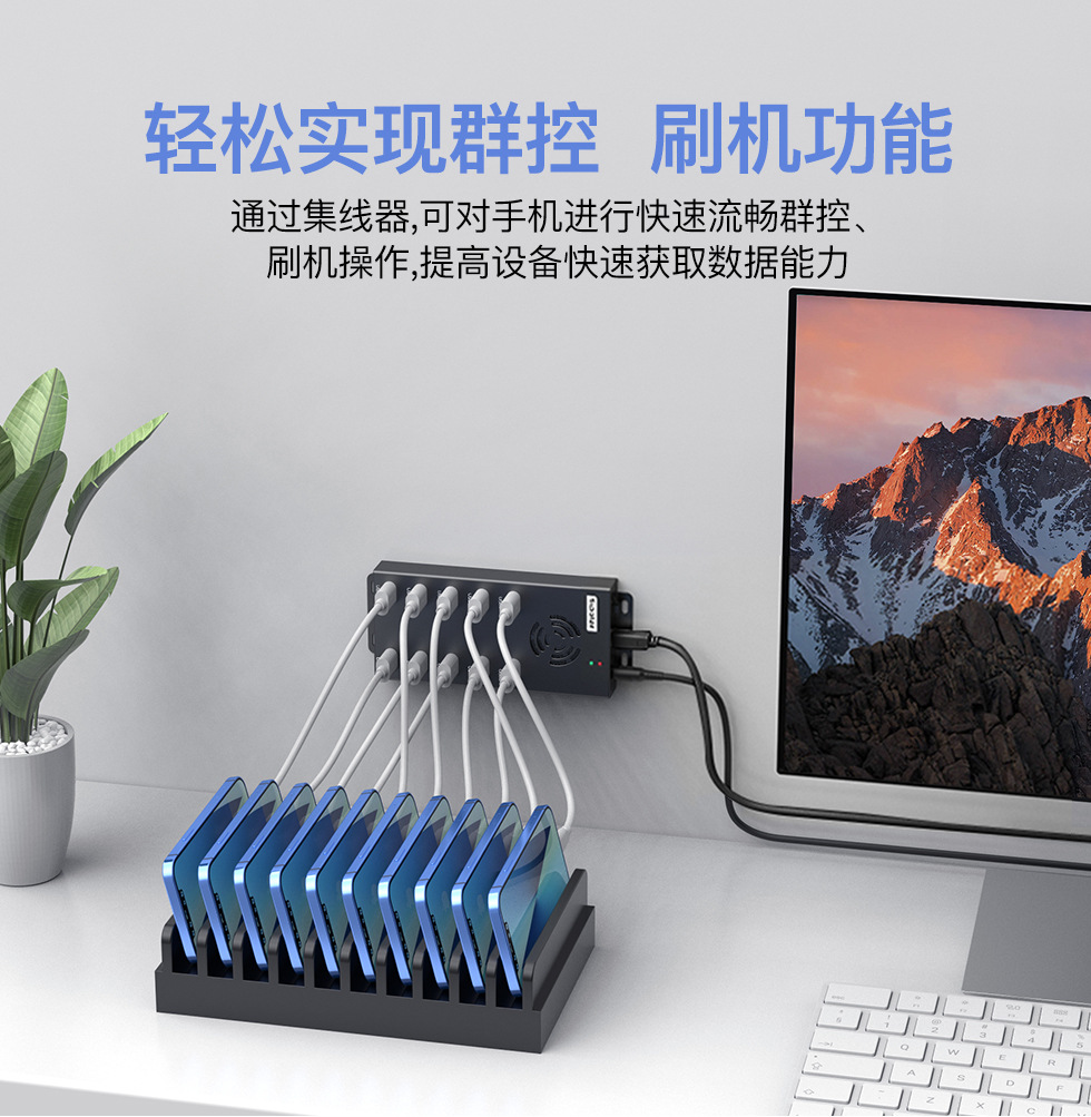 Siple Industrial Grade 10포트 USB2.0 분배기 2.1A 전류 고속 안정적인 전송 전원 공급 장치 포함스토어 가기
