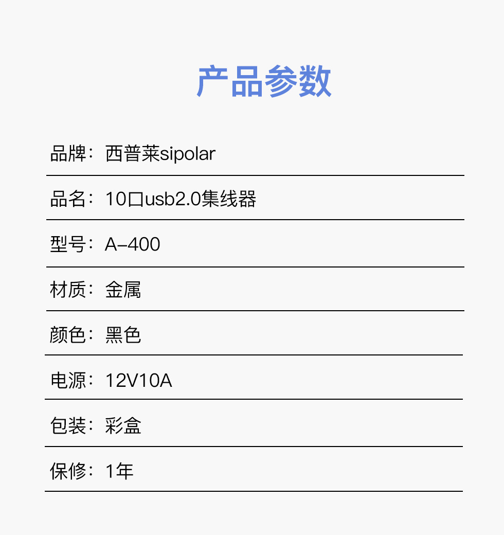 Siple Industrial Grade 10포트 USB2.0 분배기 2.1A 전류 고속 안정적인 전송 전원 공급 장치 포함