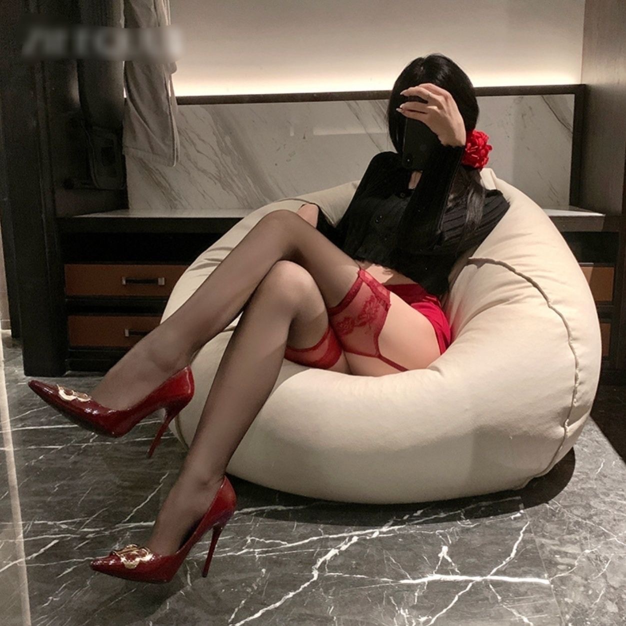 • 스타킹 레이스 나비 검정과 빨강