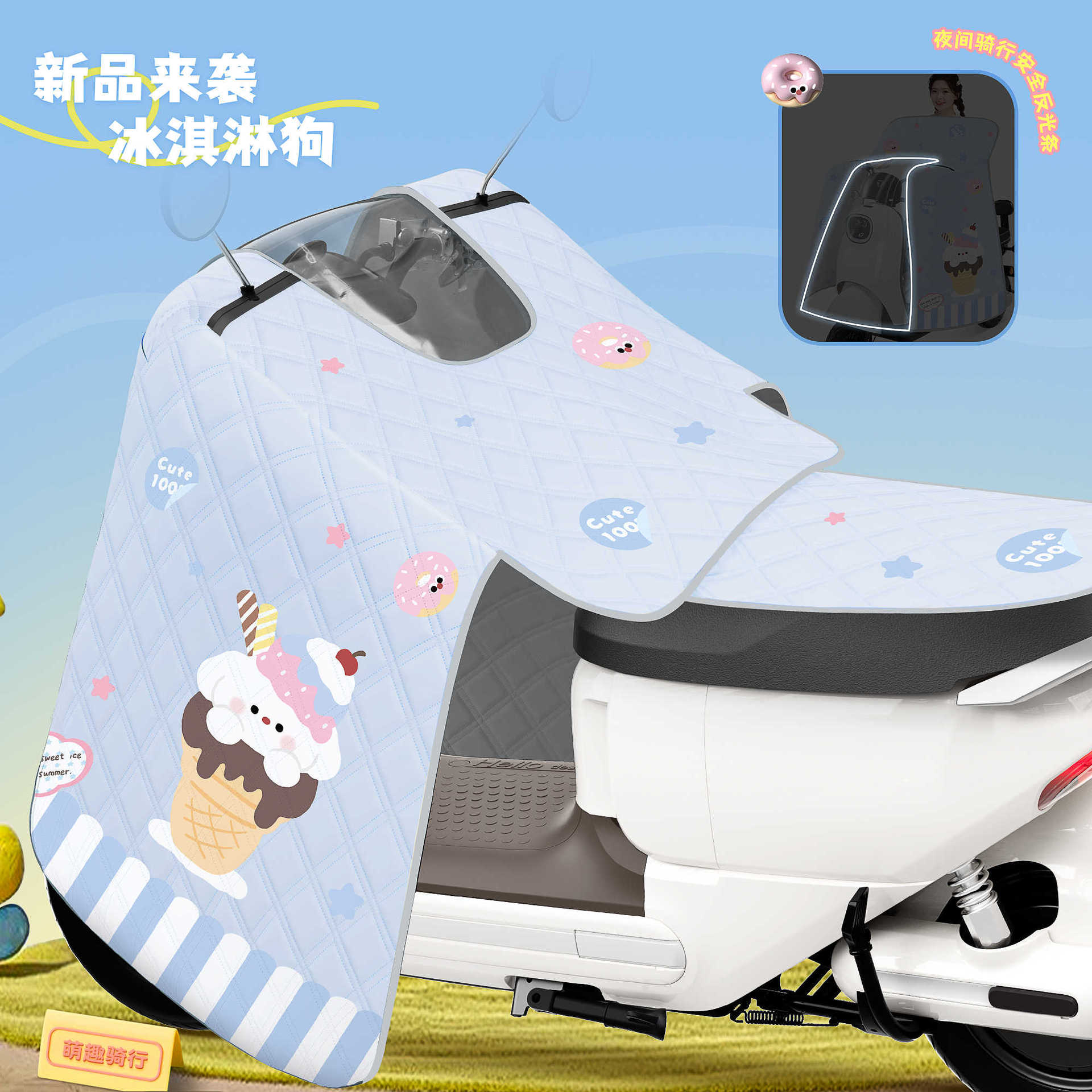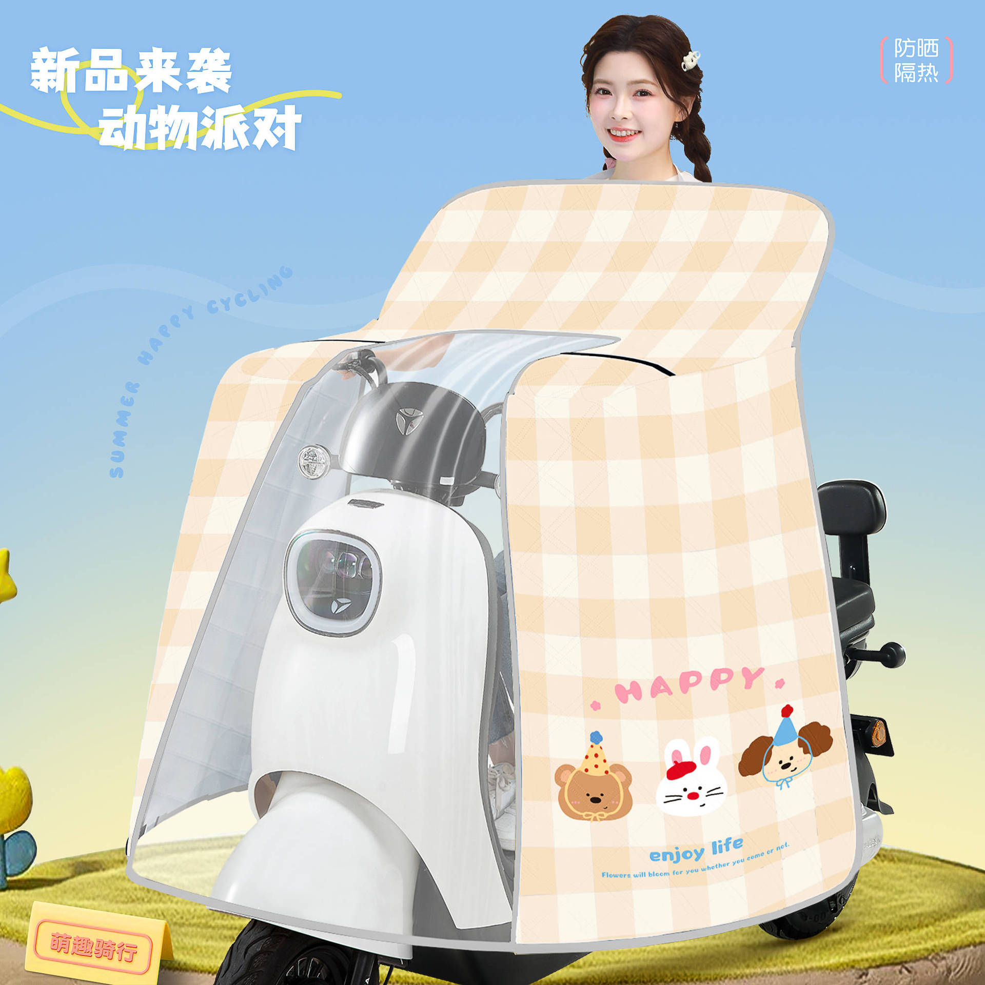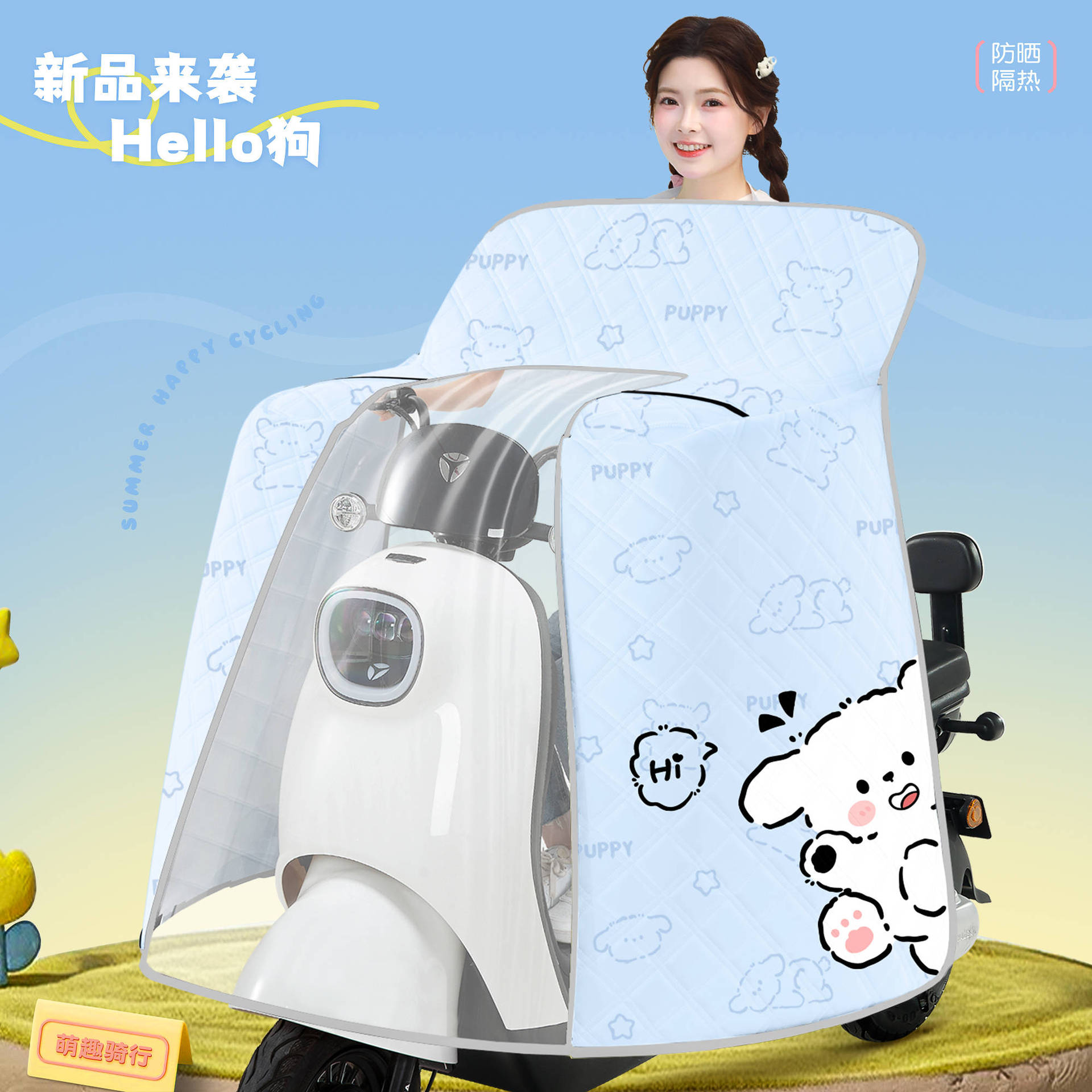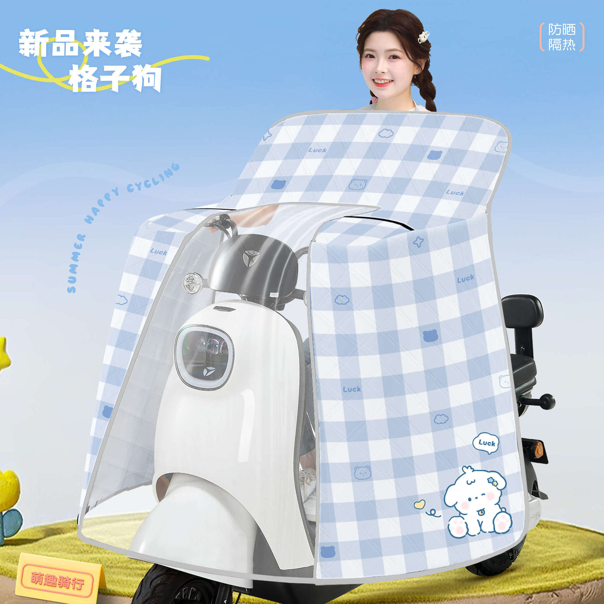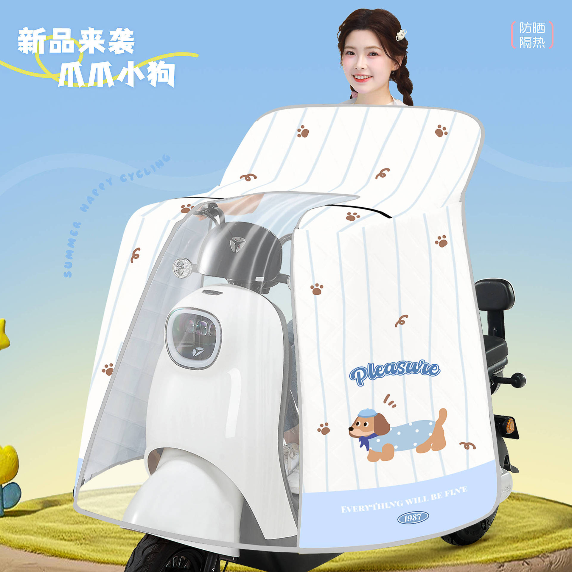 [신규] 전기 자동차 앞유리 여름 자외선 차단 및 방수 일체형 케이프 스타일 배터리 오토바이 차양스토어 가기