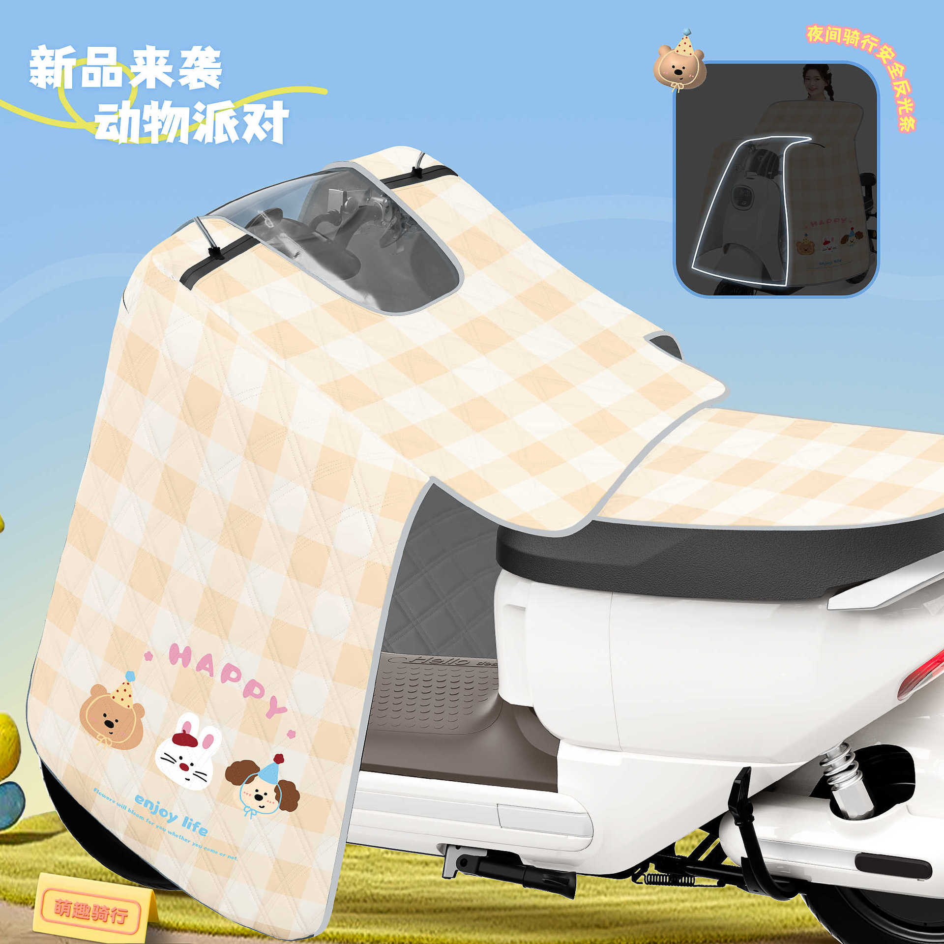 • 일체형 시트쿠션 모델 [동물파티] - [야간 반사 스트립 + 주차 시 수납 가능]