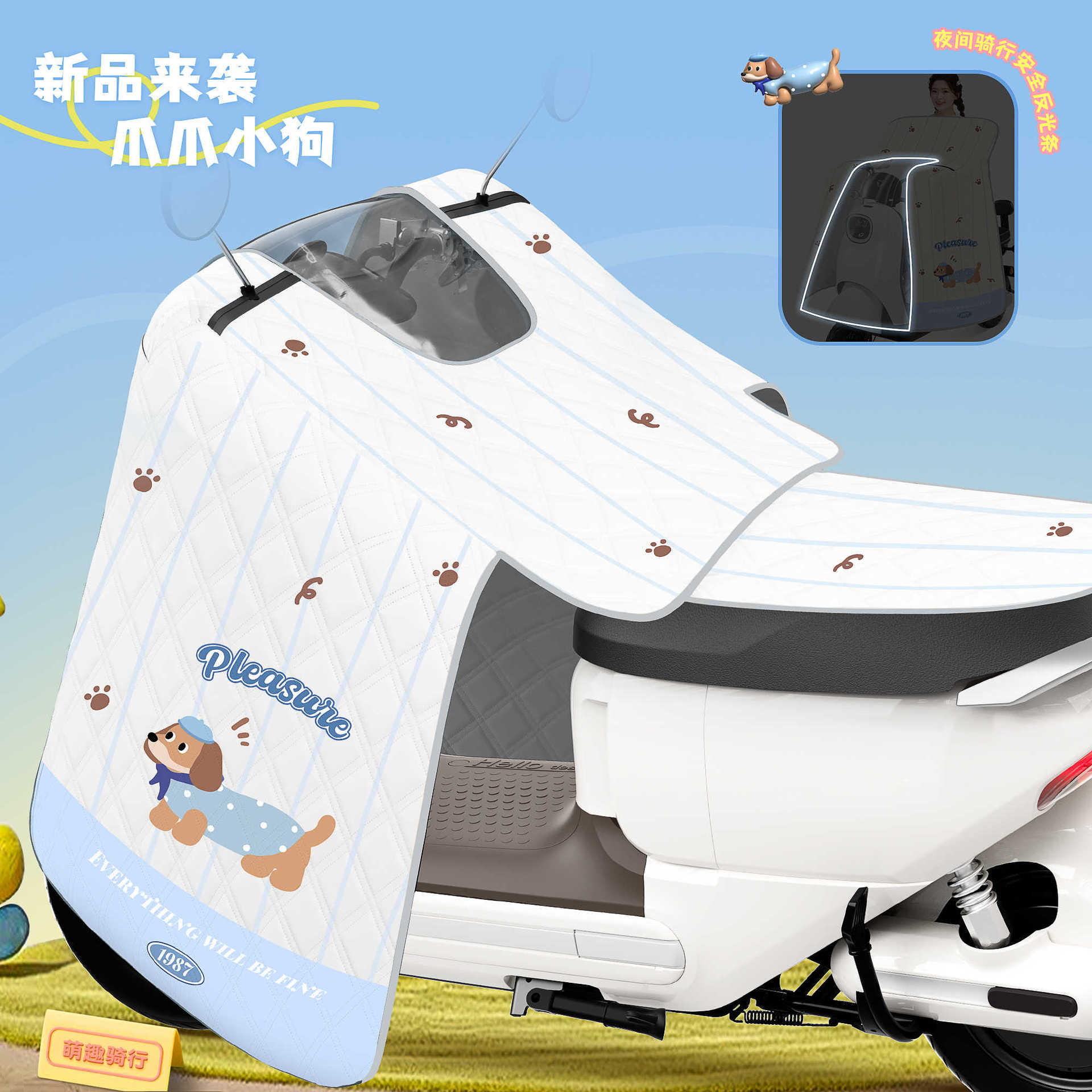 • 일체형 시트쿠션 모델 [아이스크림독] - [야간 반사 스트립 + 주차 시 수납 가능]
