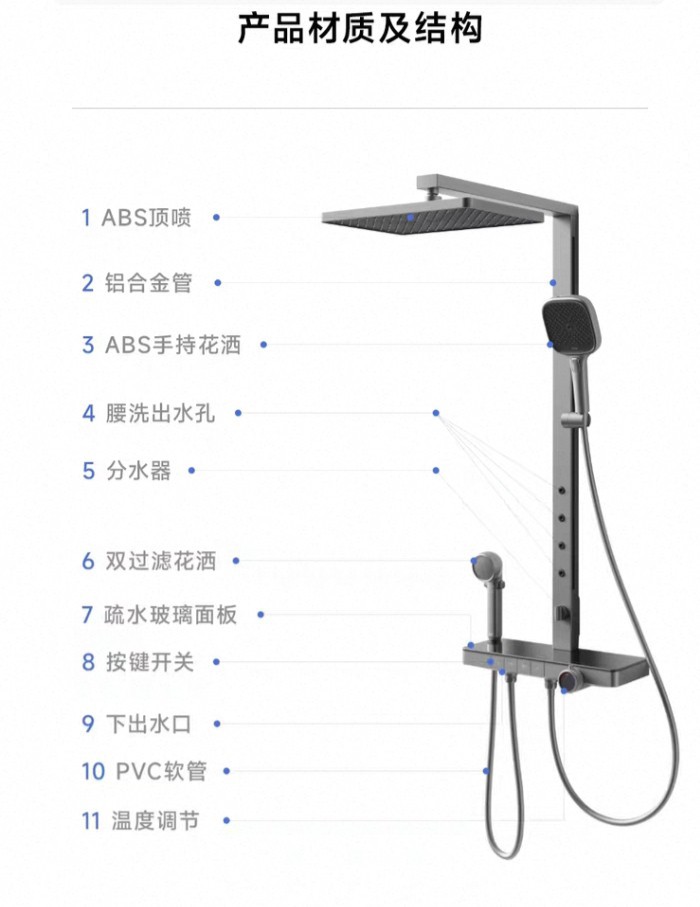유백색 총 회색 황동 디지털 디스플레이 스토리지 샤워 세트 가정용 욕실 샤워 부스터 노즐