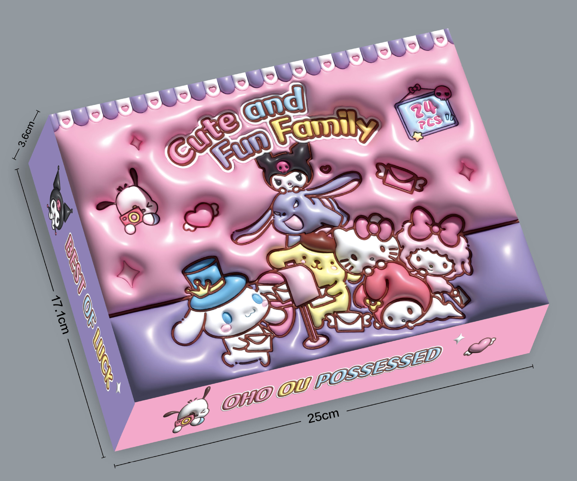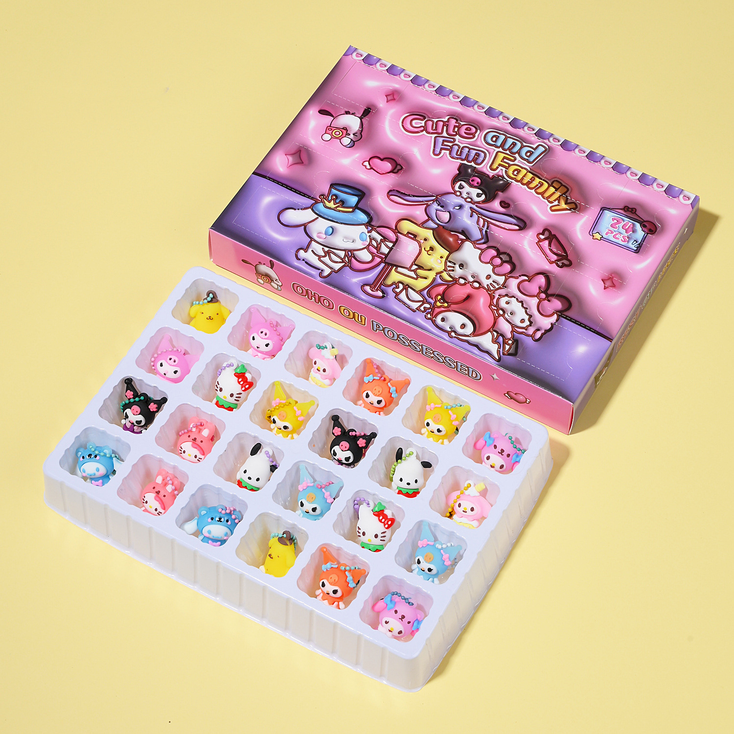 국경을 넘는 새로운 Sanrio 24 선물 상자 구멍 음악 블라인드 박스 만화 인형 펜던트 스탬프 음악 어린이 날 선물