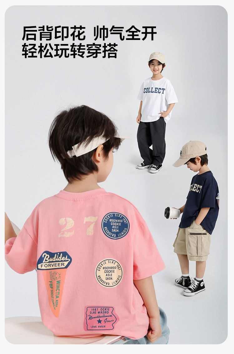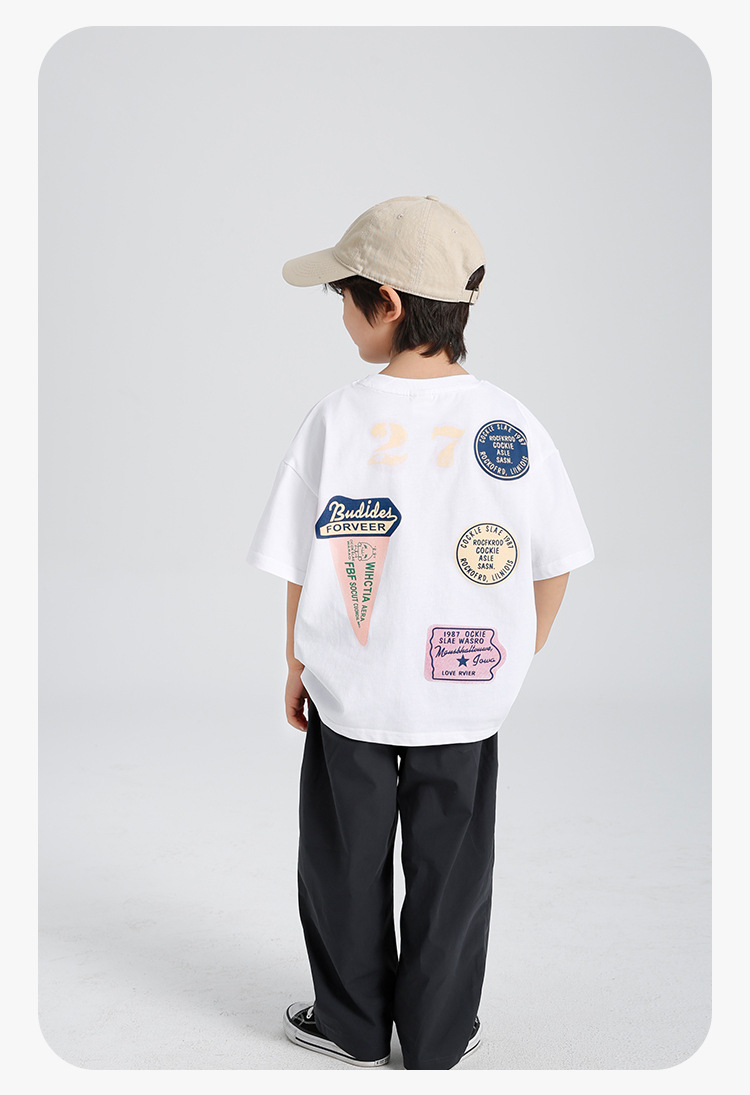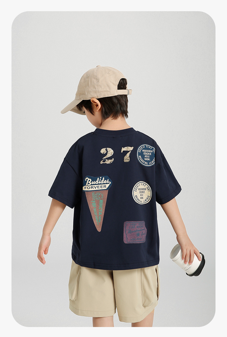 하이마 2025 년 여름 신예 소년 서양식 아이스크림 인쇄 순면 반팔 티셔츠 소녀 여름 한국 스타일