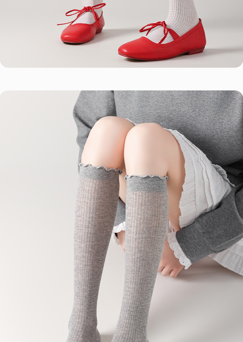 아청가 여성용 무봉제 미우미우 스타일 봄여름 메쉬 웨이브 엣지 땀흡수 여름용 얇은 슬리밍 종아리 양말 도매