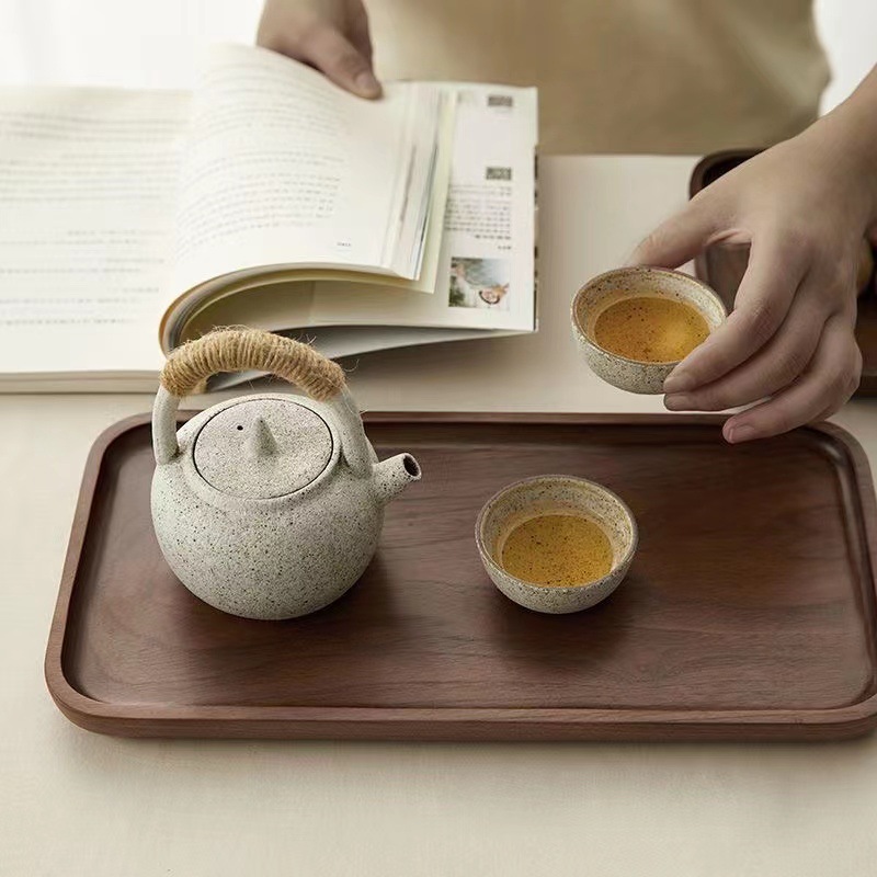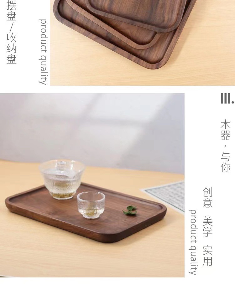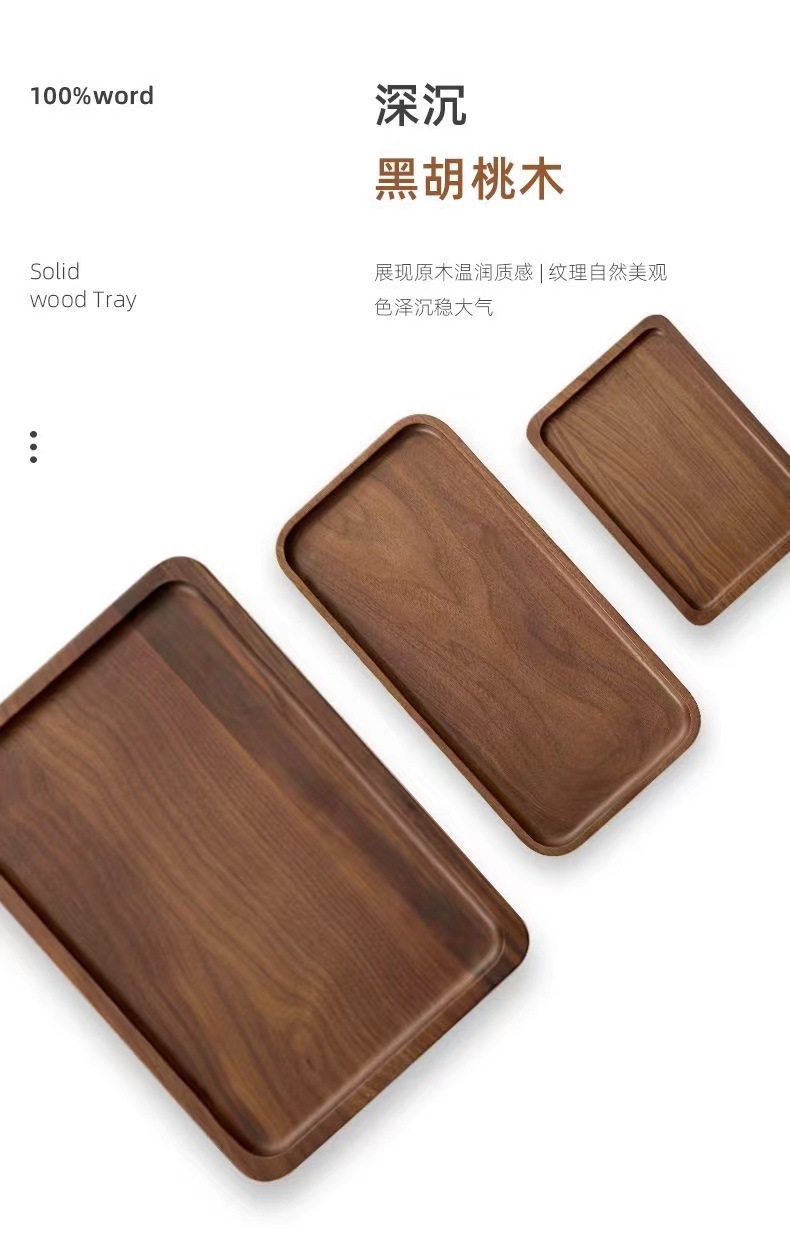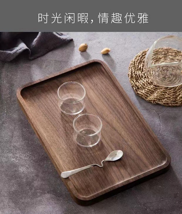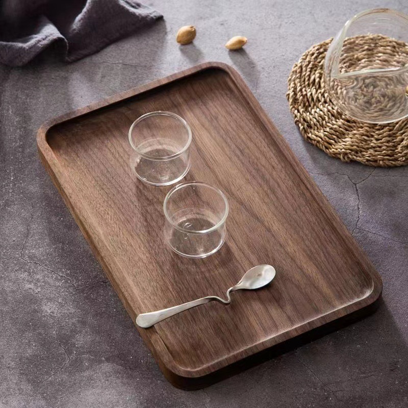 검은 호두 트레이 직사각형 일본식 가정용 물컵 단단한 나무 트레이 원목 차 트레이 디너 트레이 나무 접시