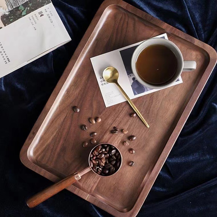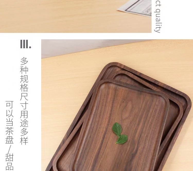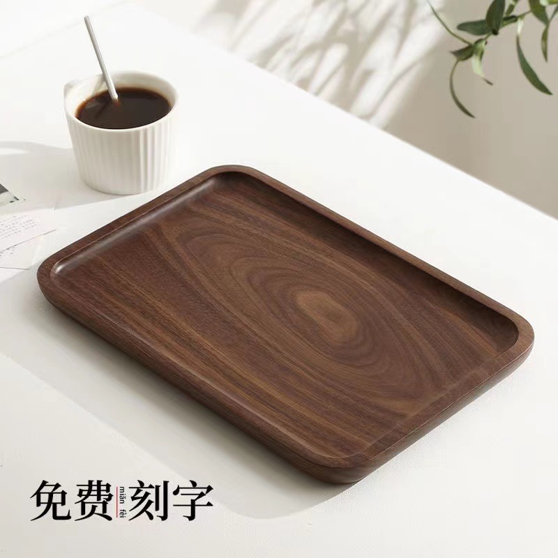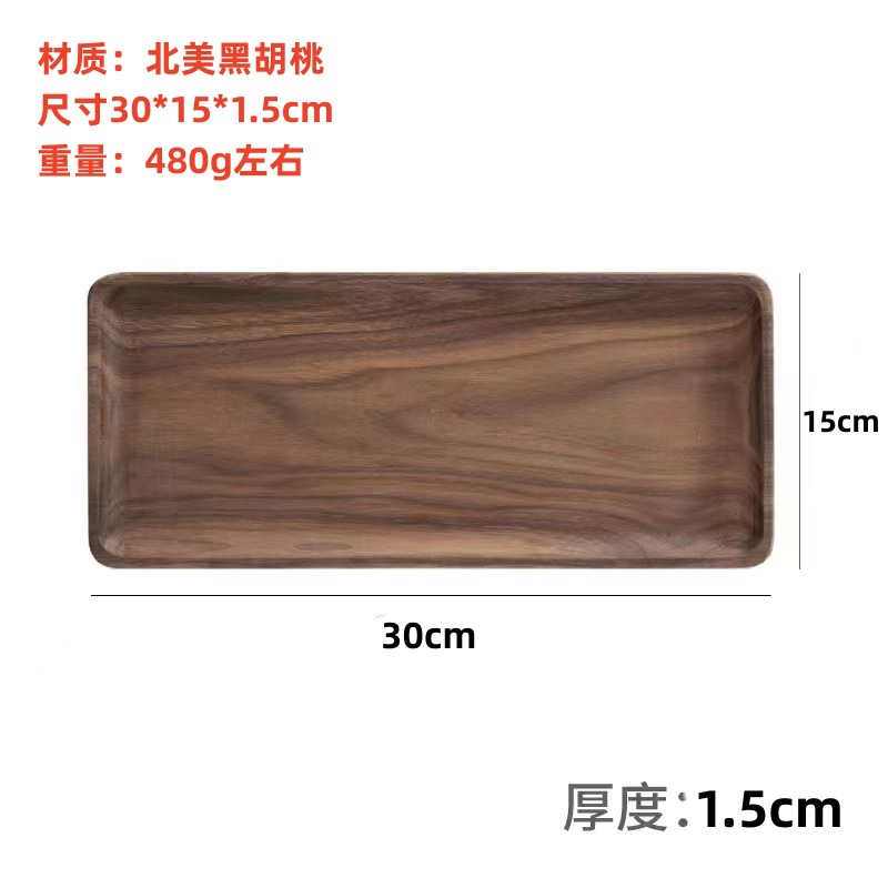 검은 호두 트레이 직사각형 일본식 가정용 물컵 단단한 나무 트레이 원목 차 트레이 디너 트레이 나무 접시스토어 가기