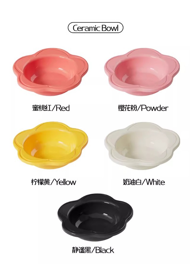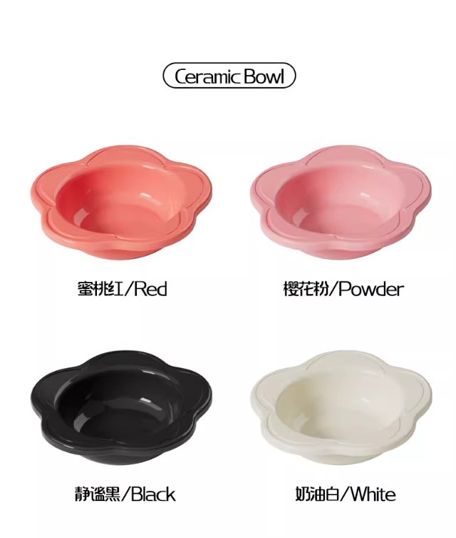 • 꽃 세라믹 그릇 조용한 블랙 + 리프팅 그릇 랙 그레이 화이트 [높이 및 각도 조절 가능]