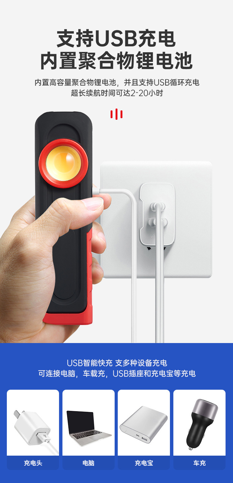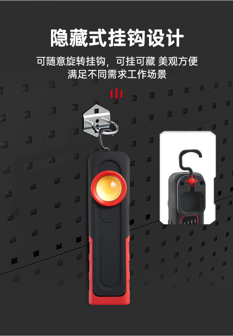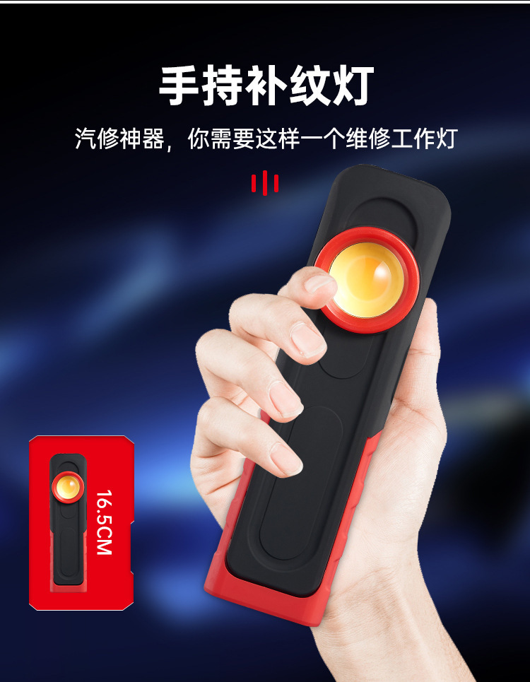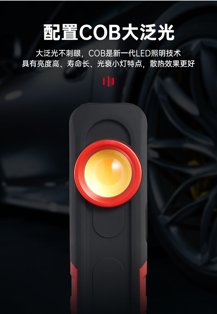 국경 간 새로운 COB 자동차 작업 조명 USB 충전식 점검 조명 휴대용 자기 흡입 고휘도 차량 조명 LED 조명