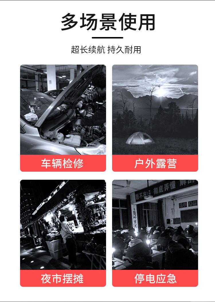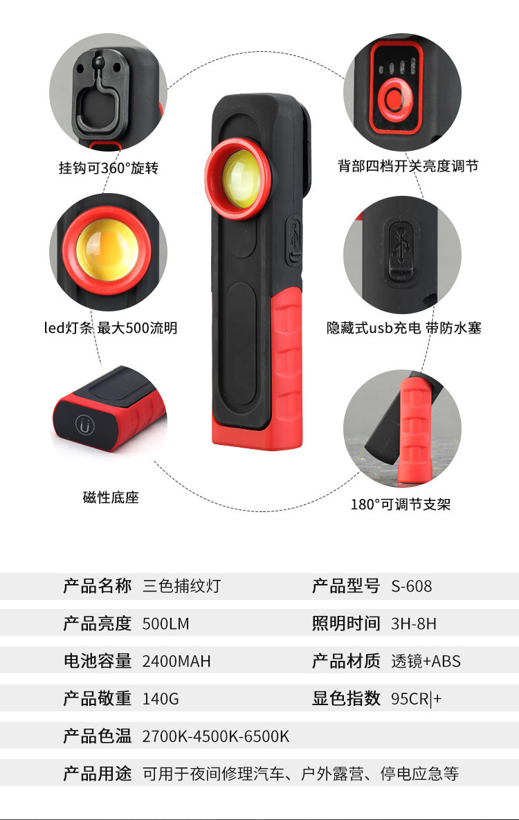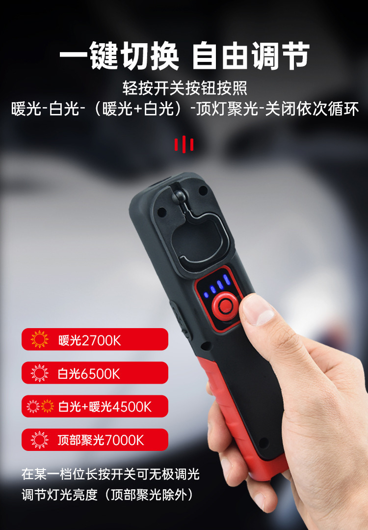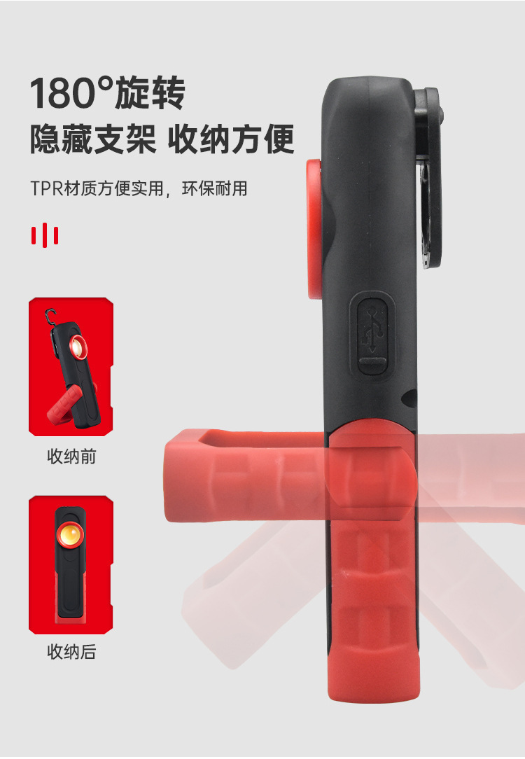 국경 간 새로운 COB 자동차 작업 조명 USB 충전식 점검 조명 휴대용 자기 흡입 고휘도 차량 조명 LED 조명
