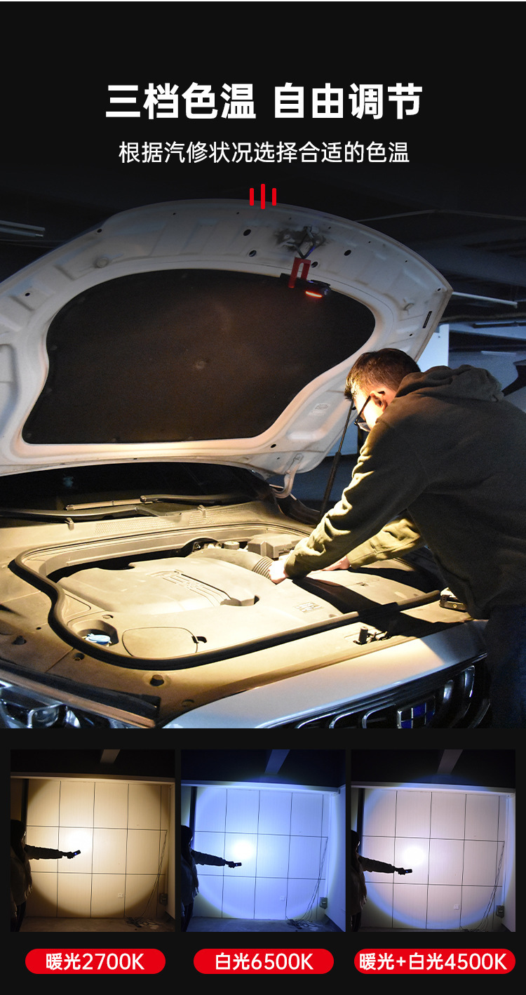 국경 간 새로운 COB 자동차 작업 조명 USB 충전식 점검 조명 휴대용 자기 흡입 고휘도 차량 조명 LED 조명스토어 가기