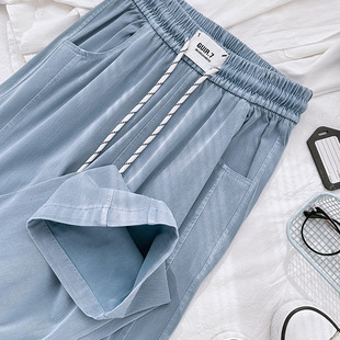 무 삼촌 리오셀 텐셀 청바지 여성 여름 루즈 스트레이트 야마모토 바지 게으른 편안한 와이드 레그 팬츠스토어 가기
