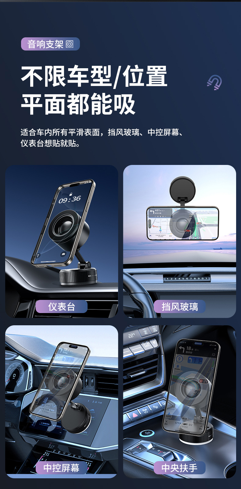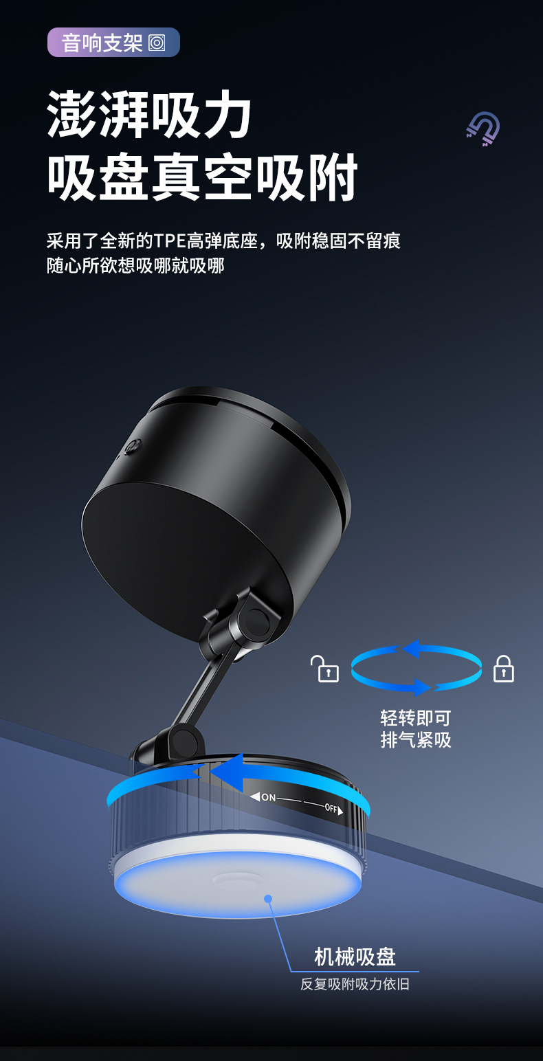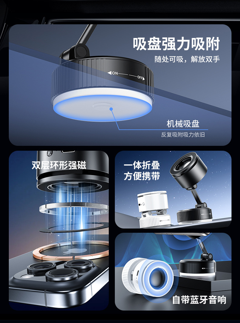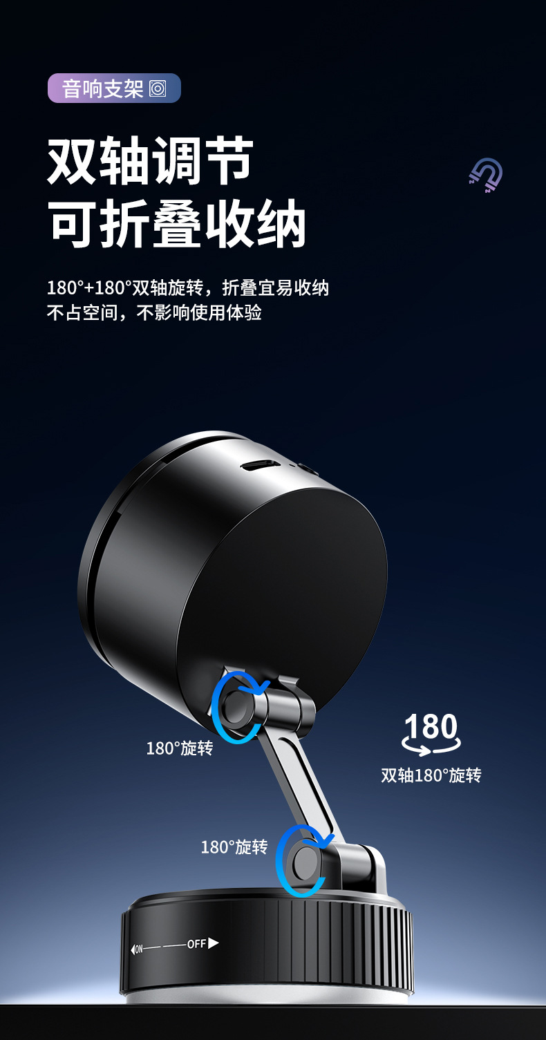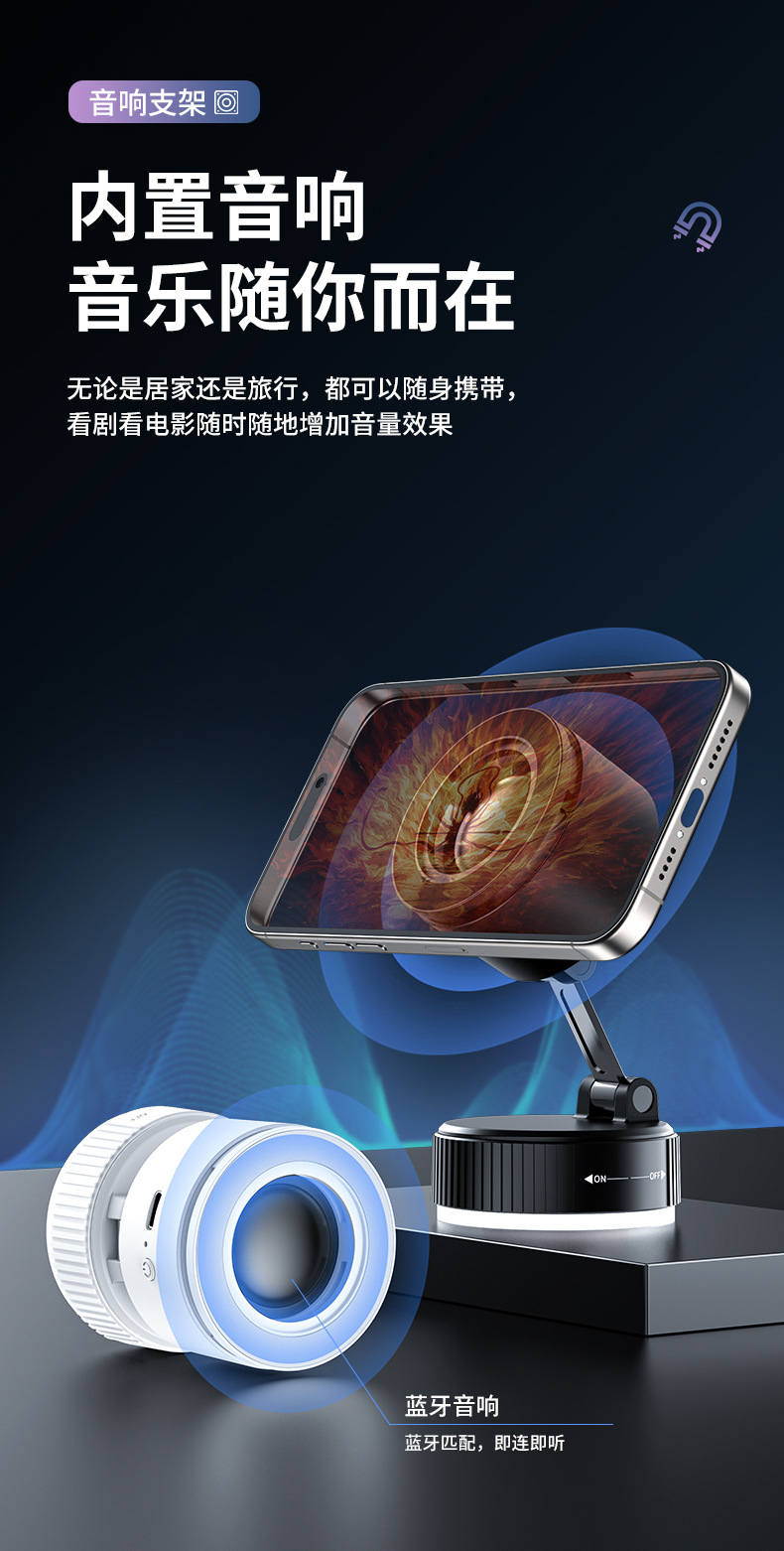 크로스보더 2026 휴대폰 거치대 블루투스 스피커 차량용 블루투스 스피커 흡착식 차량용 마그네틱식 회전식 노브형