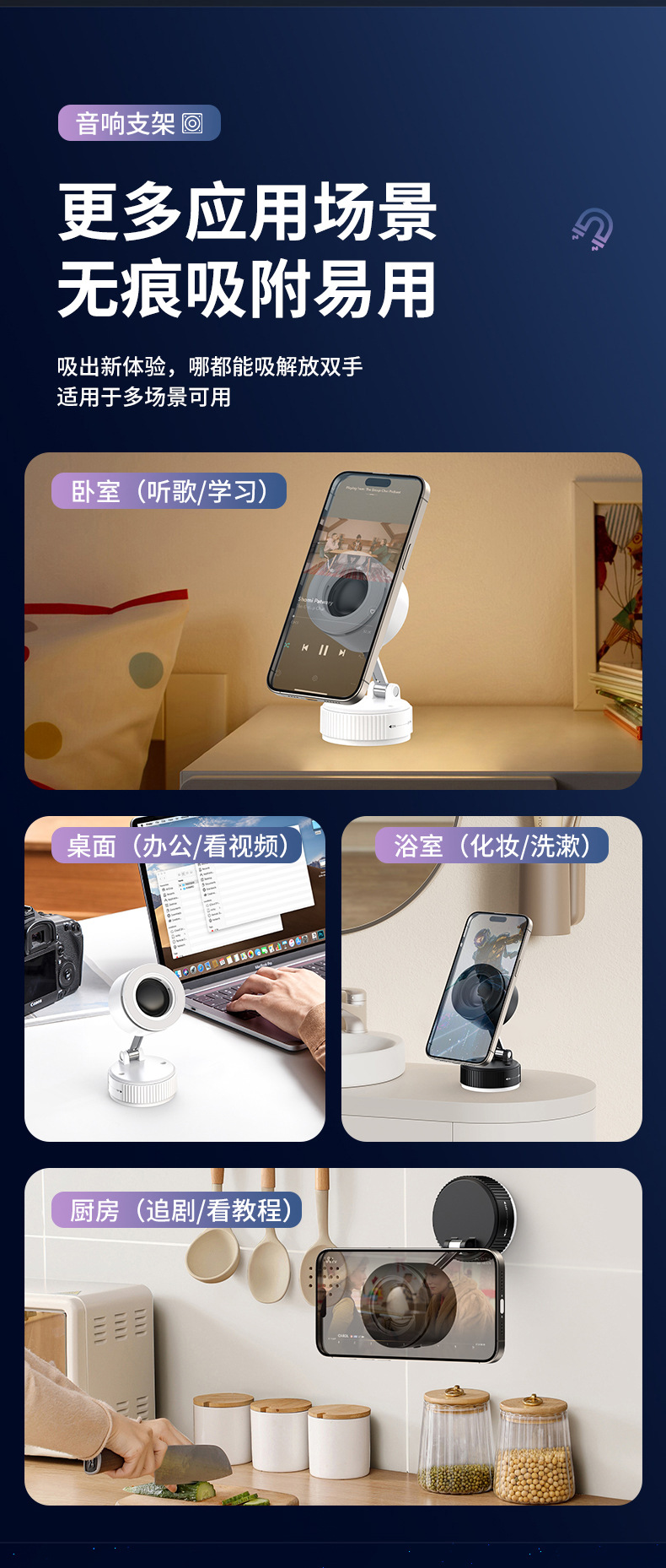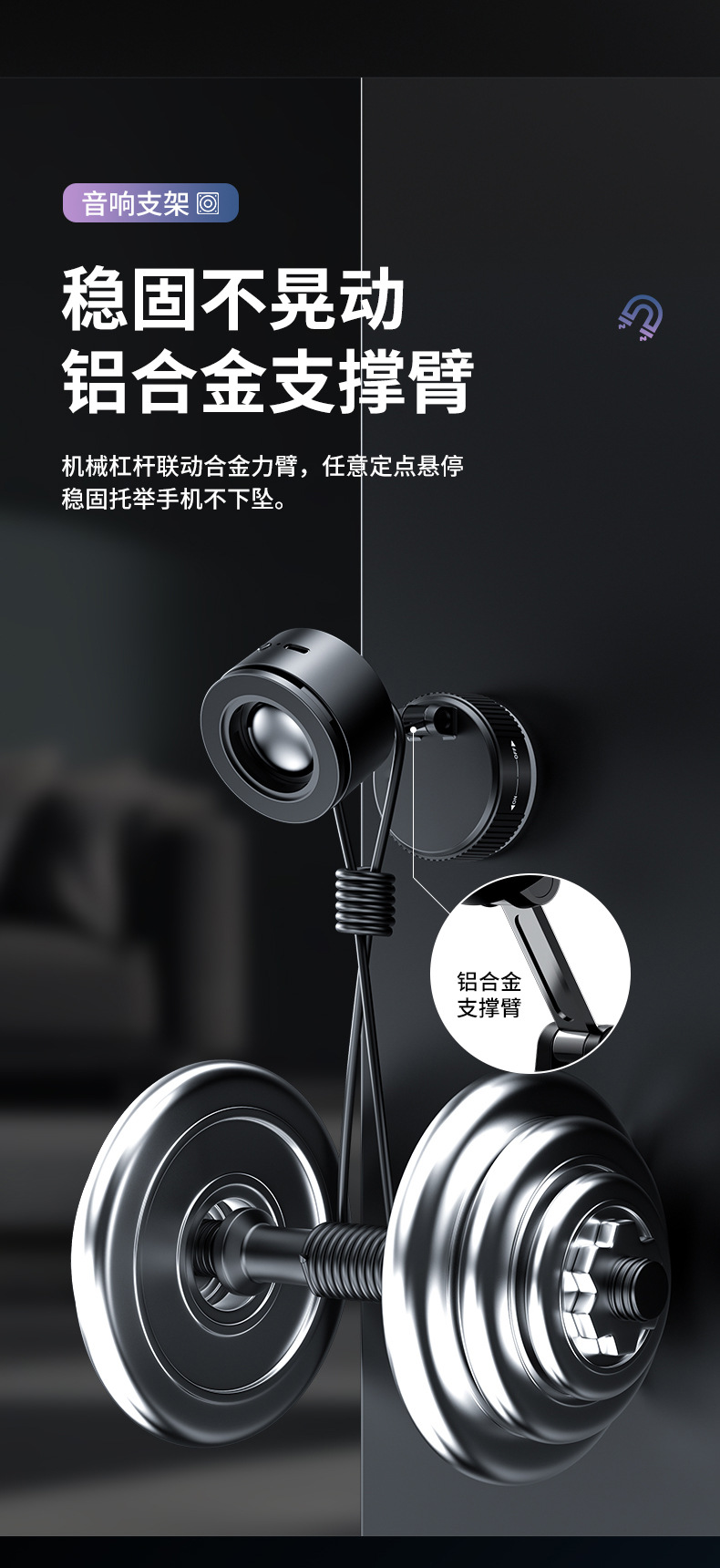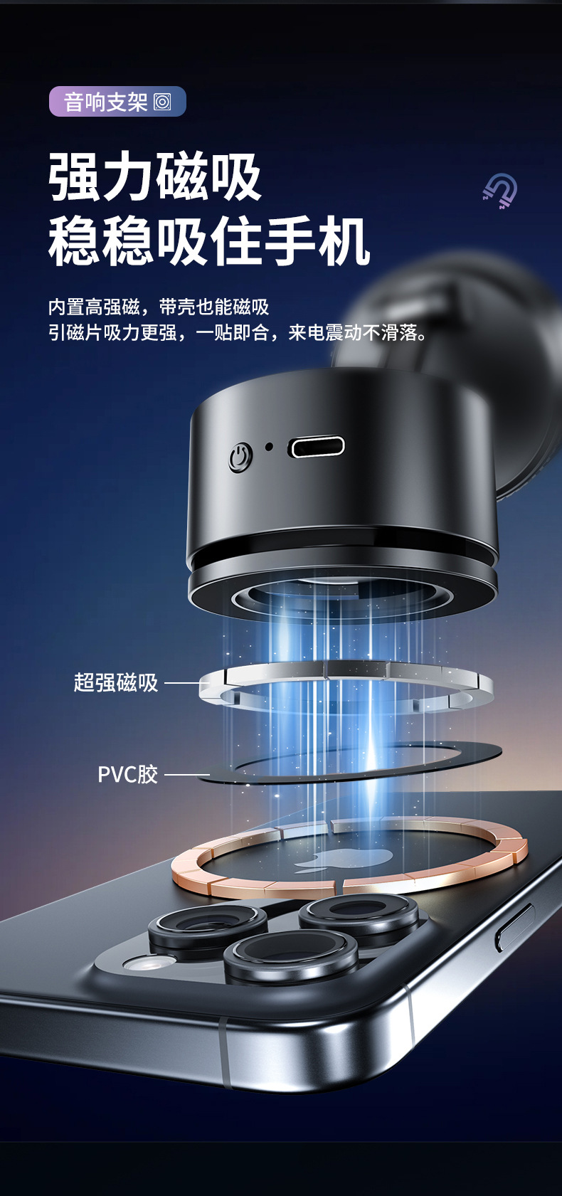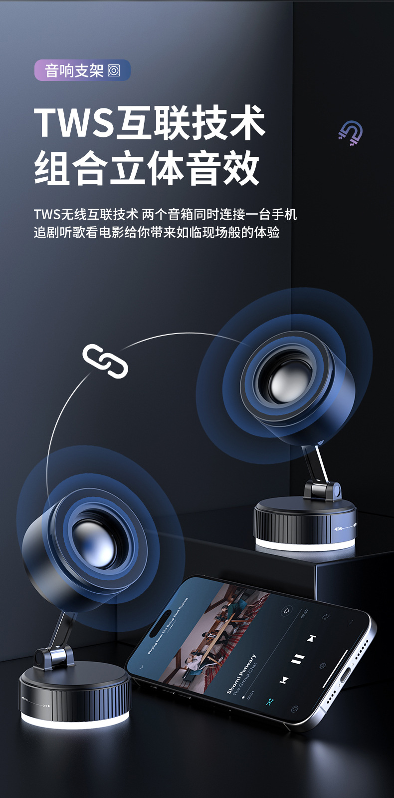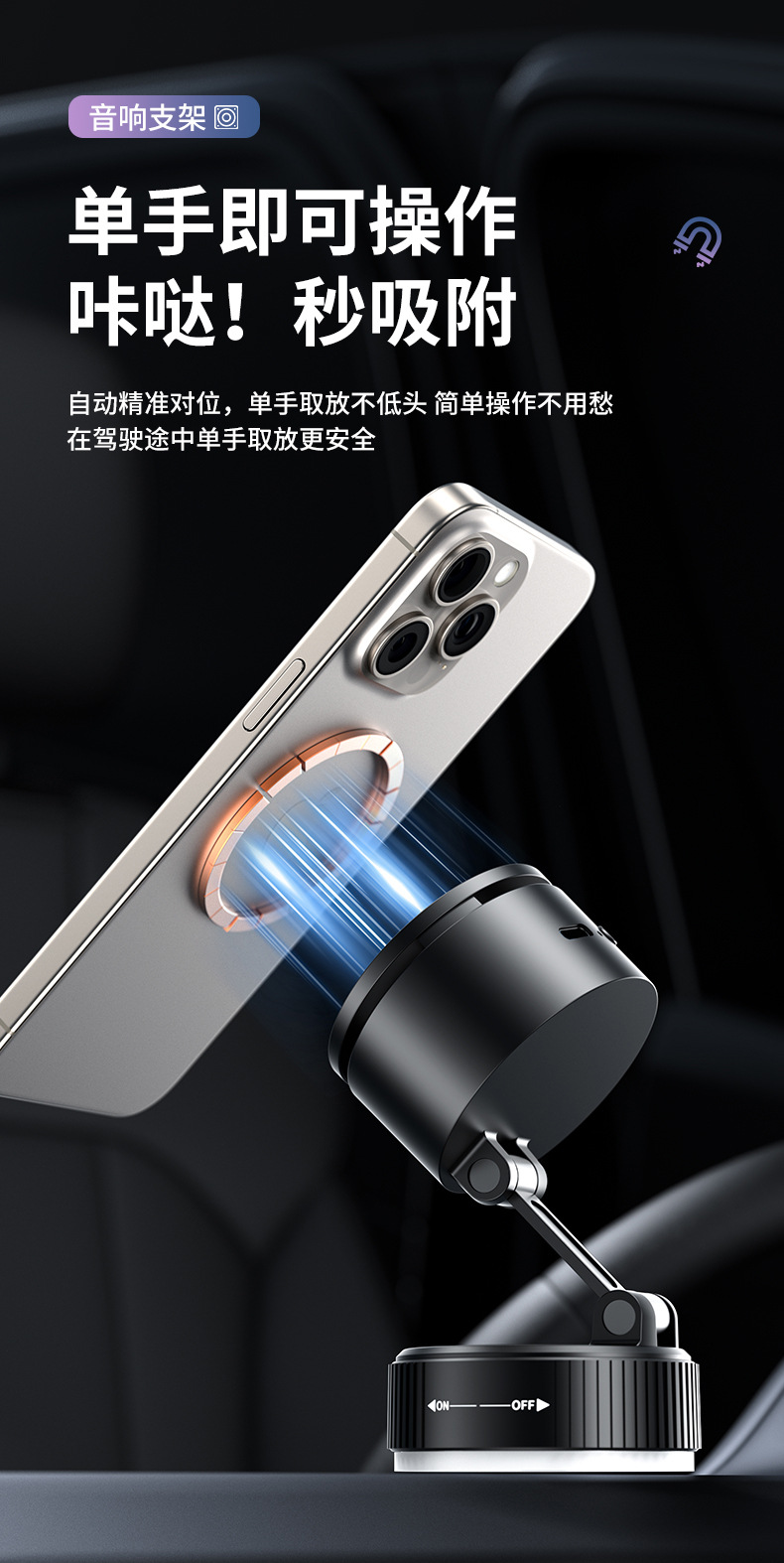 크로스보더 2026 휴대폰 거치대 블루투스 스피커 차량용 블루투스 스피커 흡착식 차량용 마그네틱식 회전식 노브형