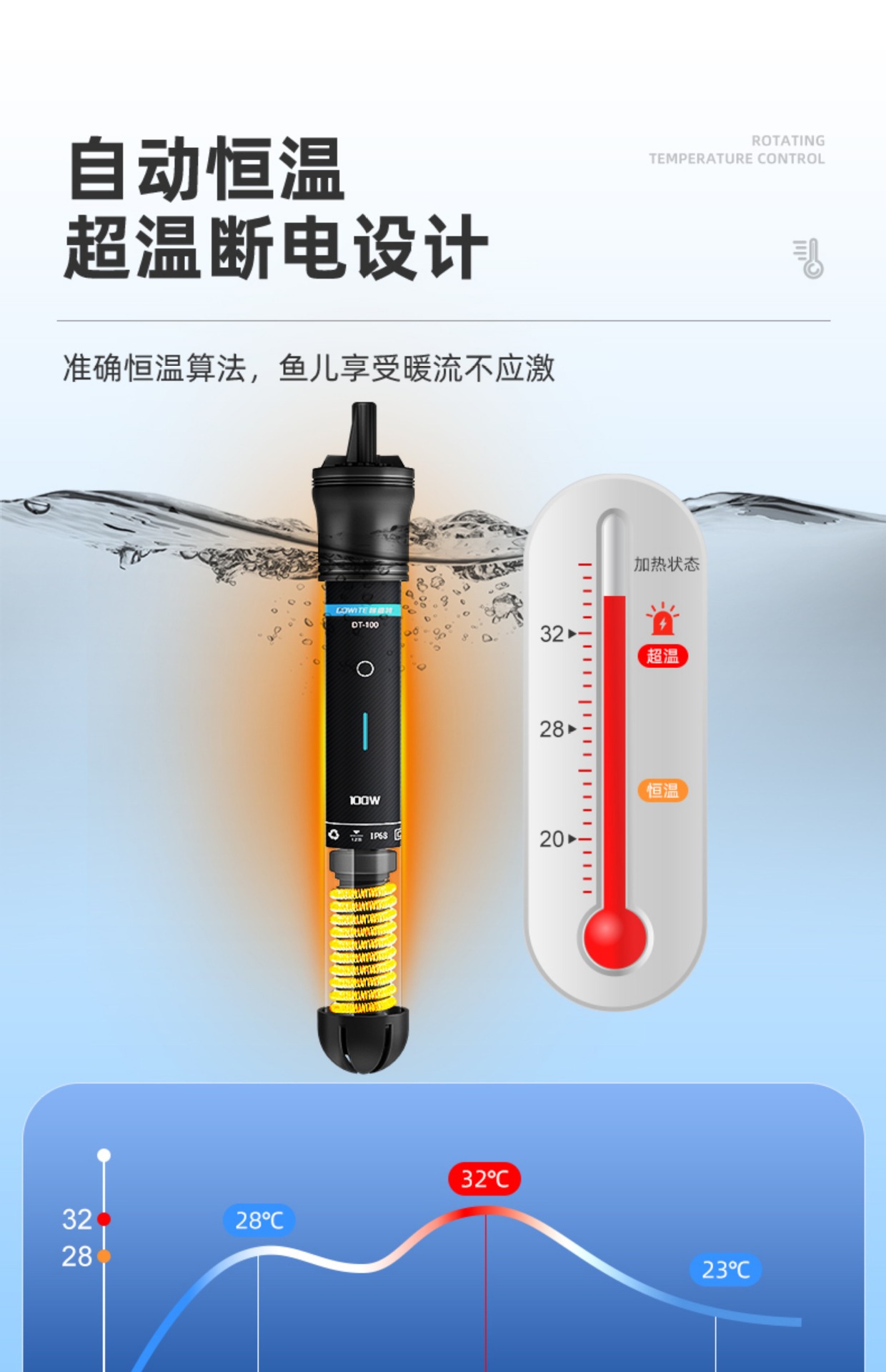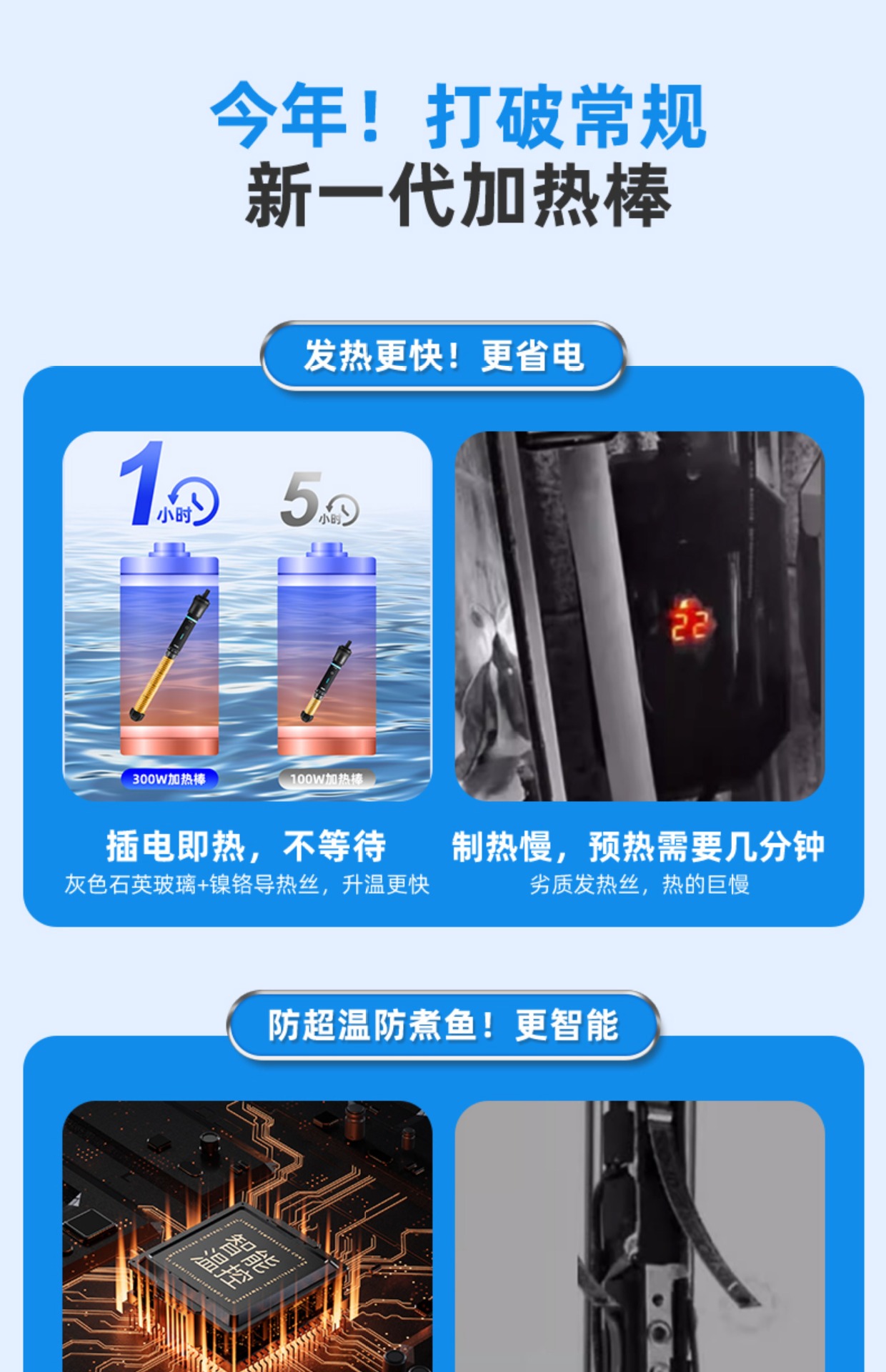 물고기 탱크 가열 막대 자동 항온 소형 가변 주파수 물 분리 전원 차단 대형 가정용 거북이 가열기