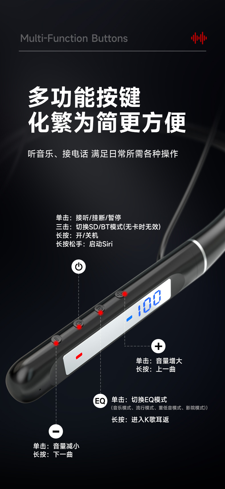 고화질 소음 감소 목 장착형 무선 스포츠 이어폰 형 무선 블루투스 헤드셋 초장기 배터리 수명 카드 삽입형 블루투스 이중 용도스토어 가기