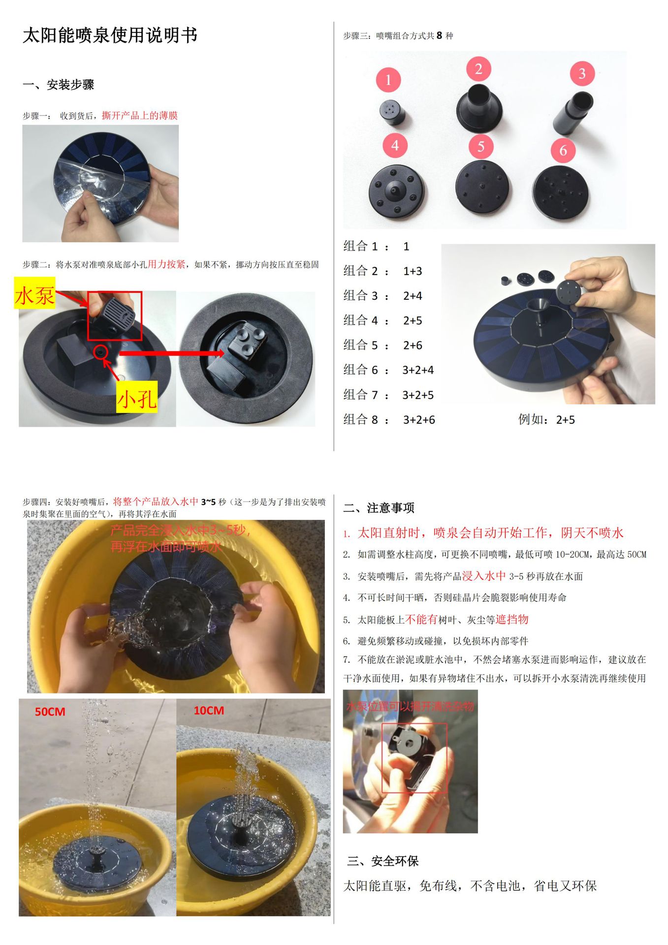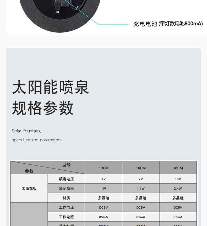 분수 빛 물 펌프 부동 물 장식 분수와 태양 부동 분수 수영장 야외 조류 피더