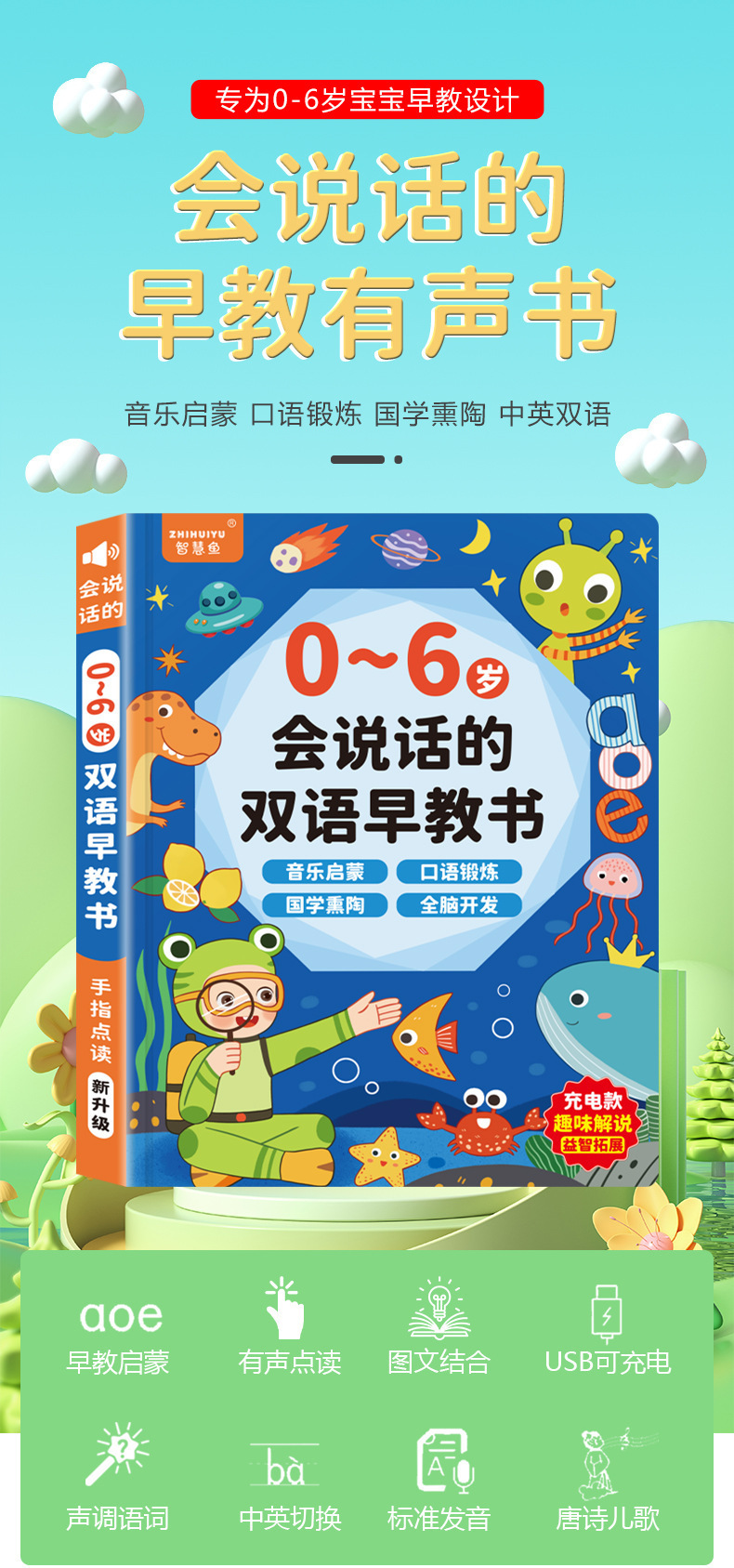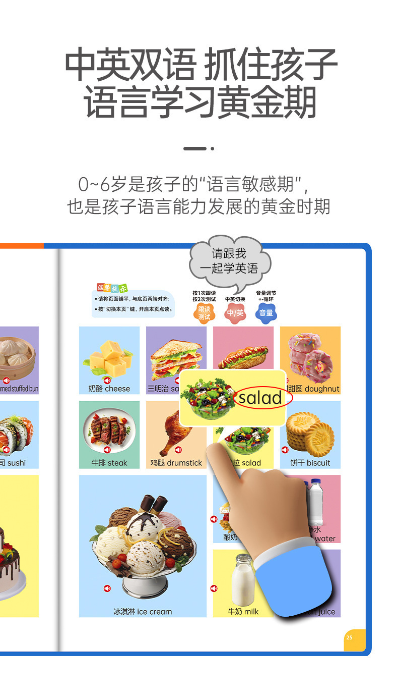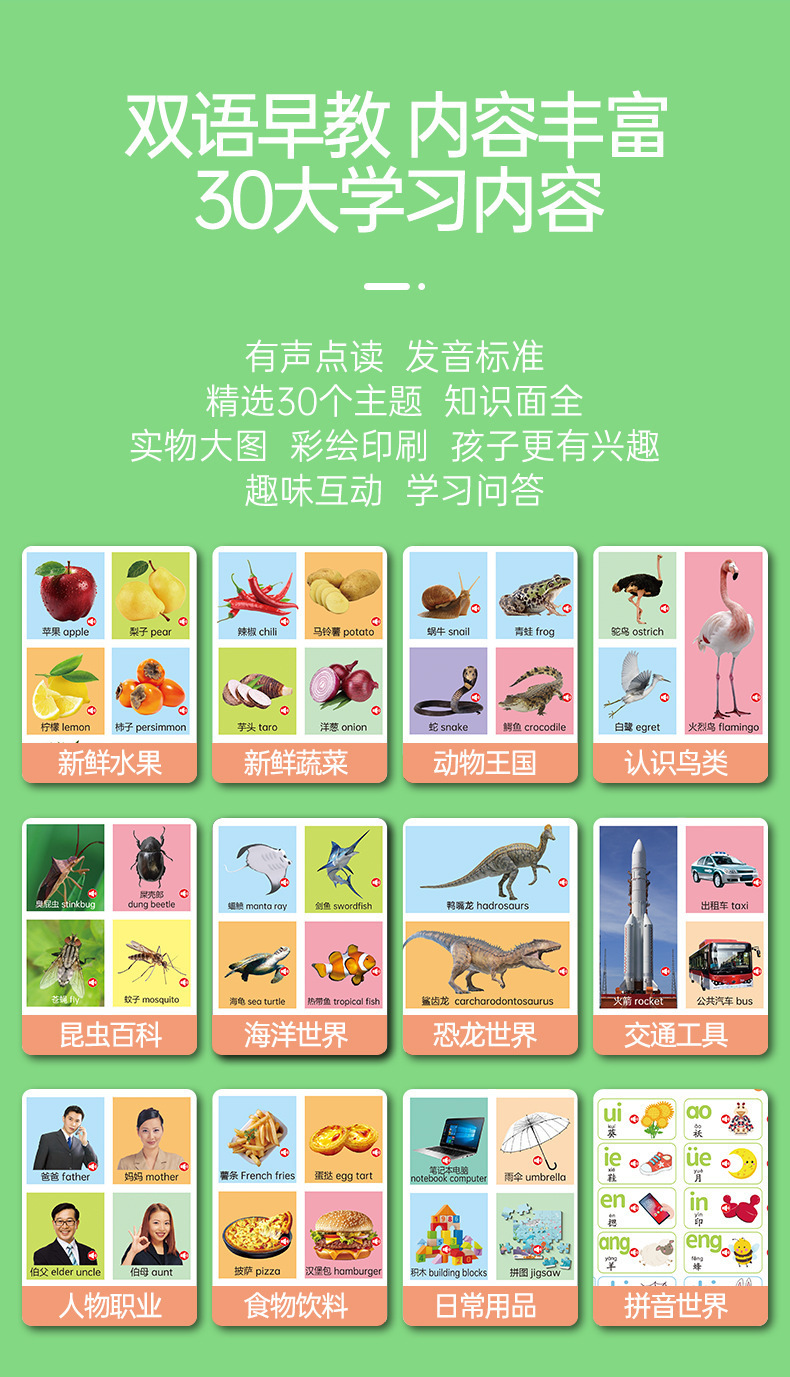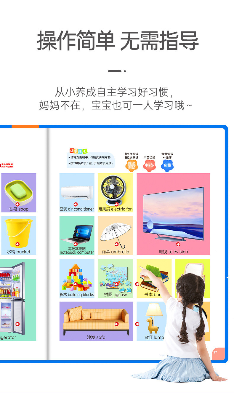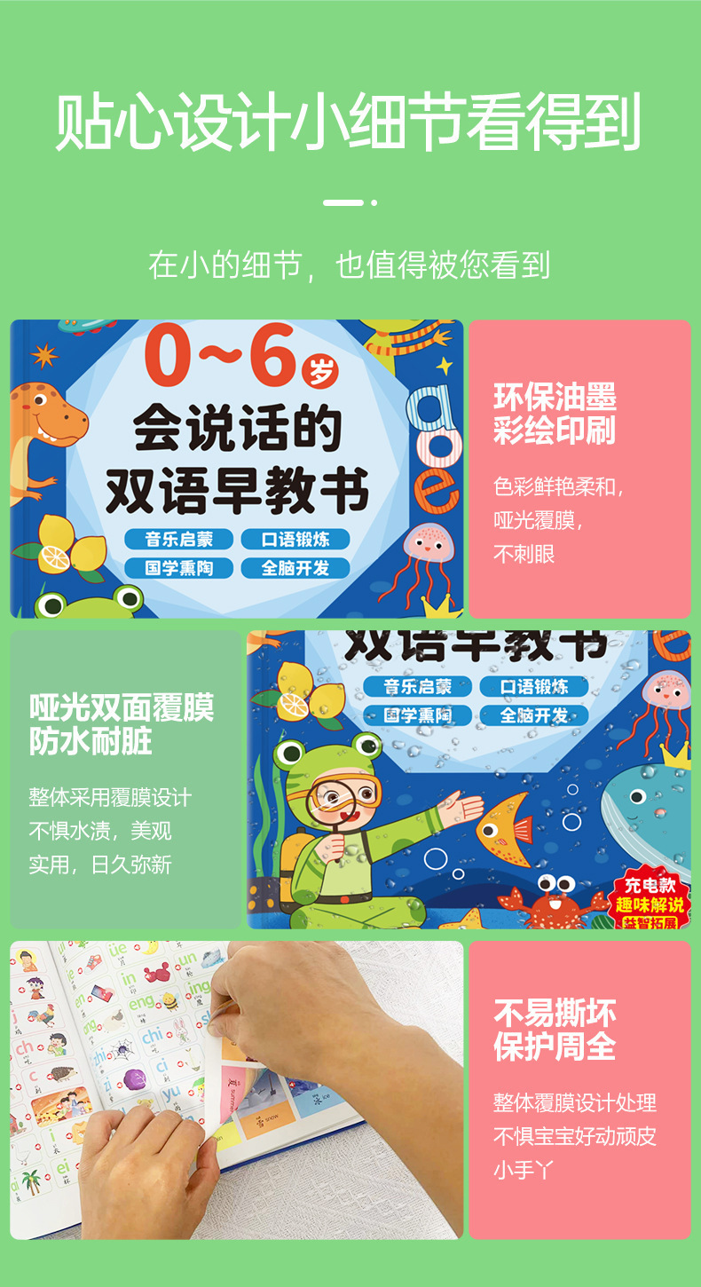• [충전식 모델] 0~8세 어린이를 위한 중국어, 영어, 광둥어 조기 교육 도서