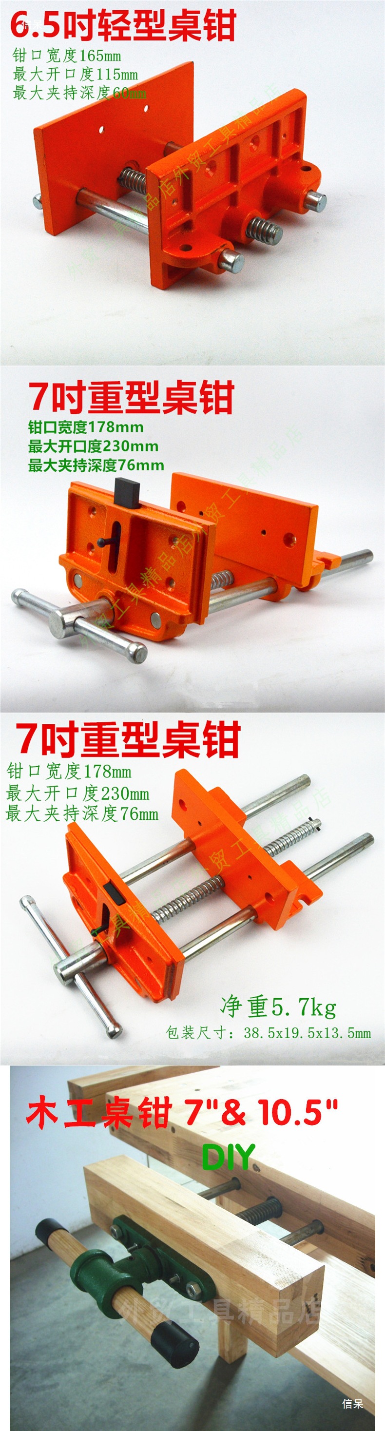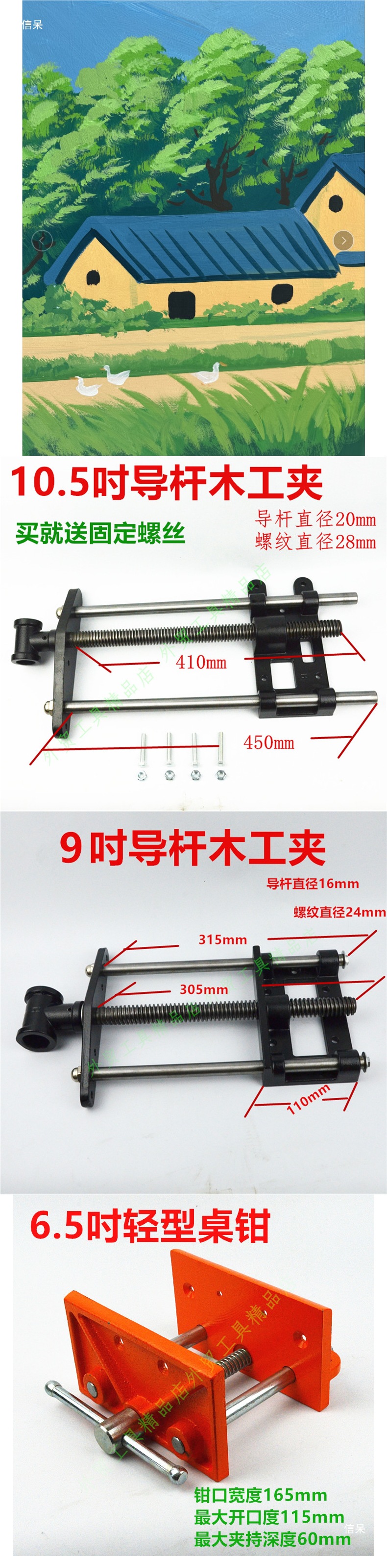 목공 테이블 클램프, 목공 클램프 작업대, 대, 중, 소 3가지 크기, 7인치 9inch 10.5inch 클램프 가이드로드 작동스토어 가기