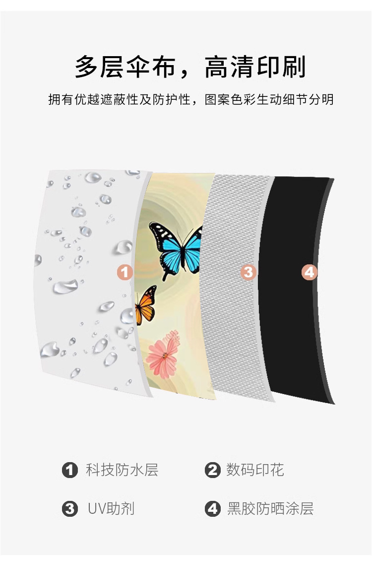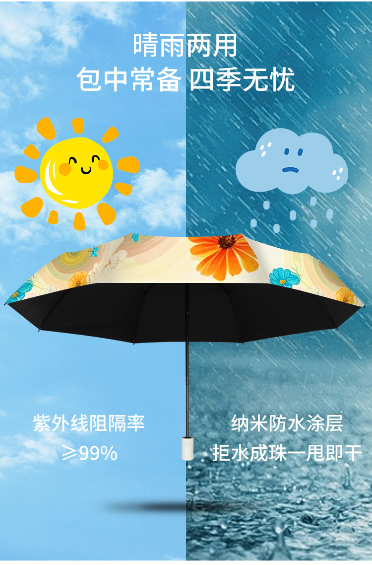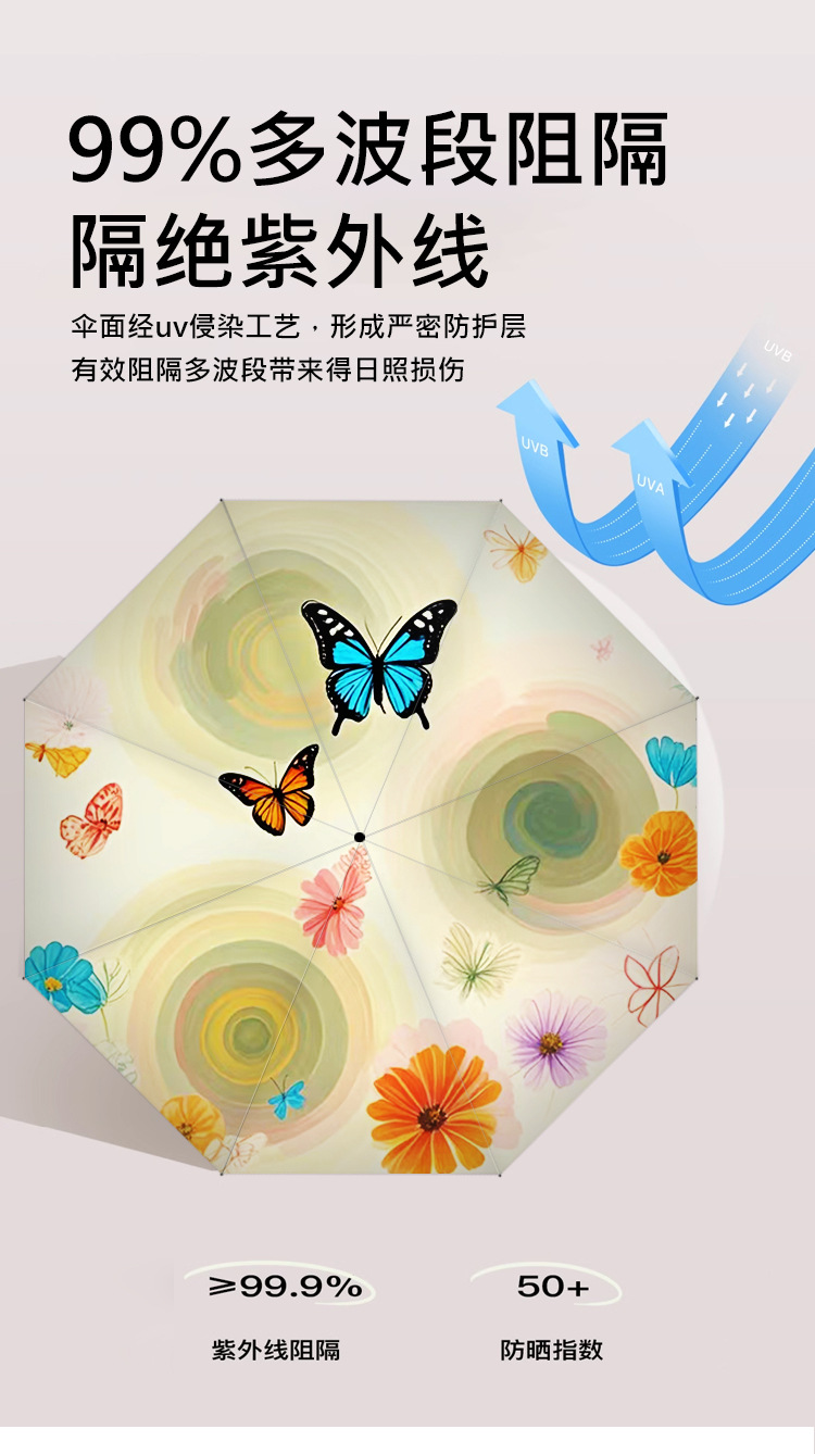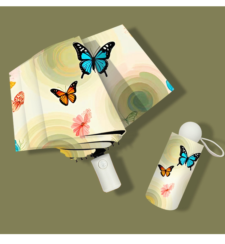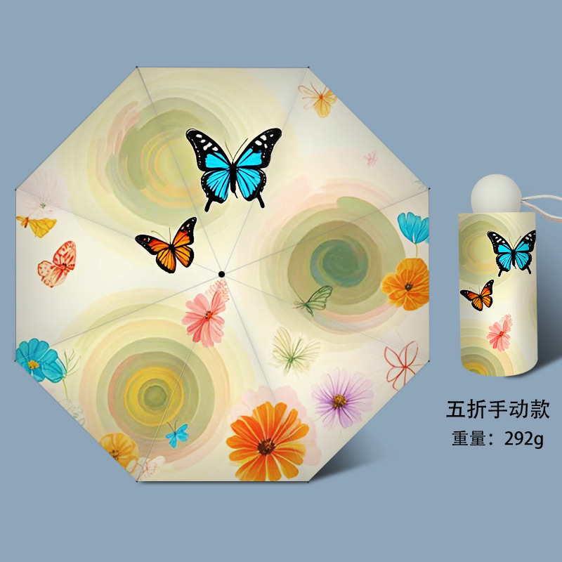 작고 심플한 여행용 휴대용 접이식 우산, 사진촬영 분위기 연출 50% off 우산, 햇빛과 비를 겸용하는 차양 및 방수 우산