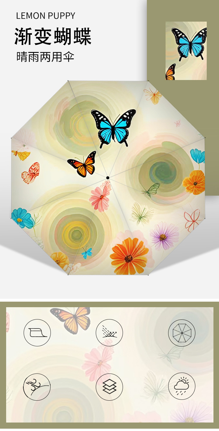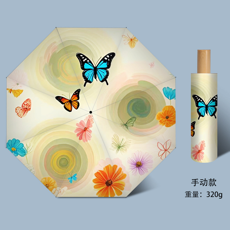 작고 심플한 여행용 휴대용 접이식 우산, 사진촬영 분위기 연출 50% off 우산, 햇빛과 비를 겸용하는 차양 및 방수 우산스토어 가기