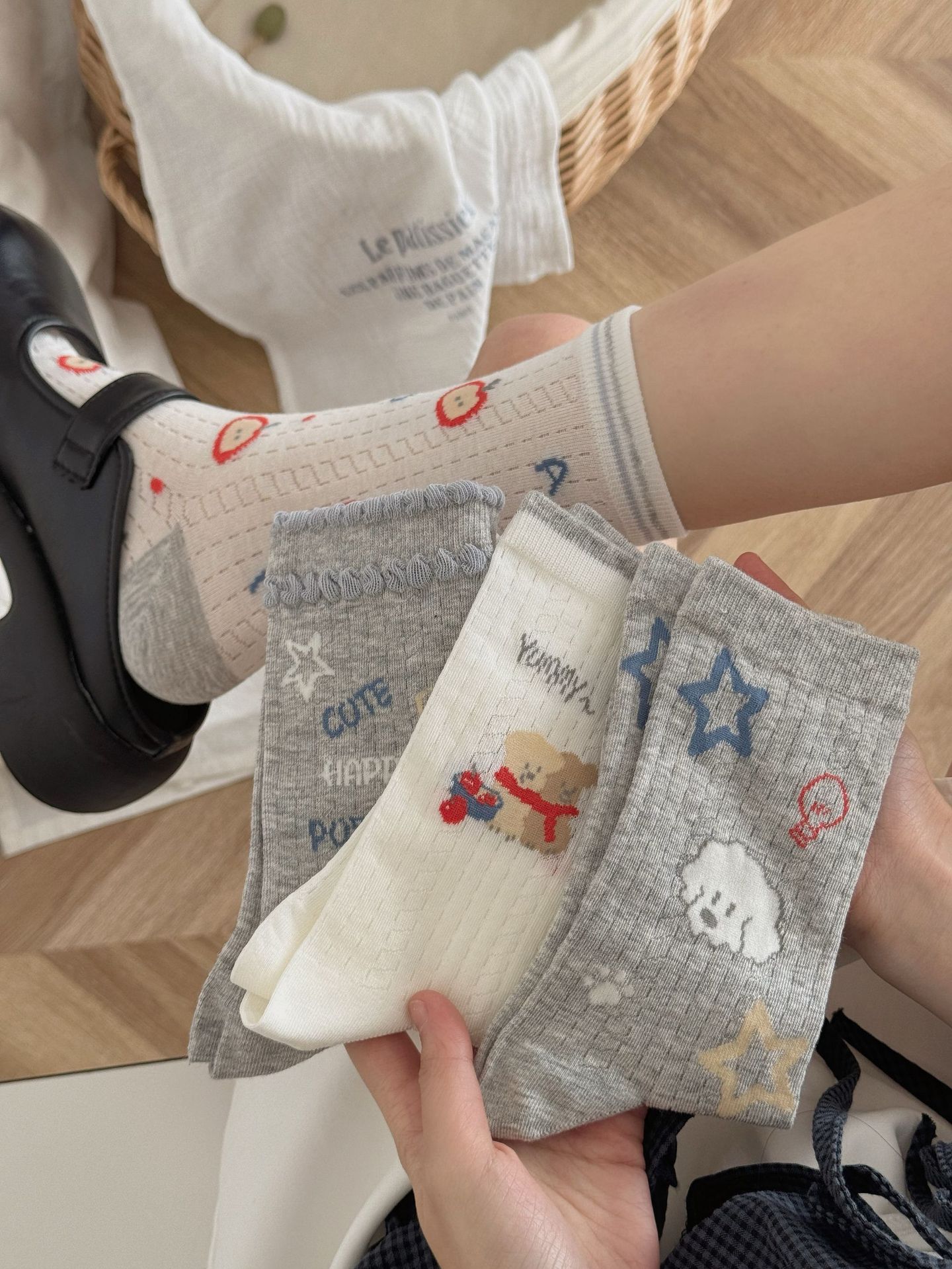 여성용 양말 봄 여름 만화 강아지 종아리 양말 한국식 메쉬 뼈없는 양말 회색 양말 Zhuji 양말