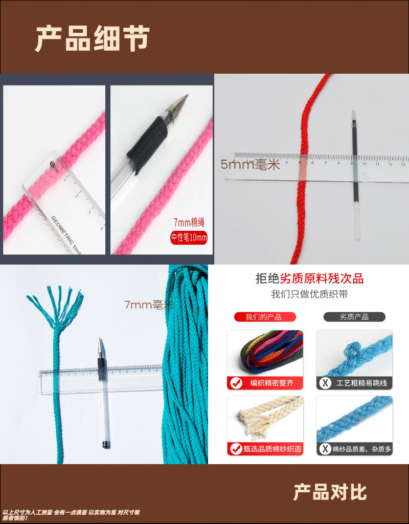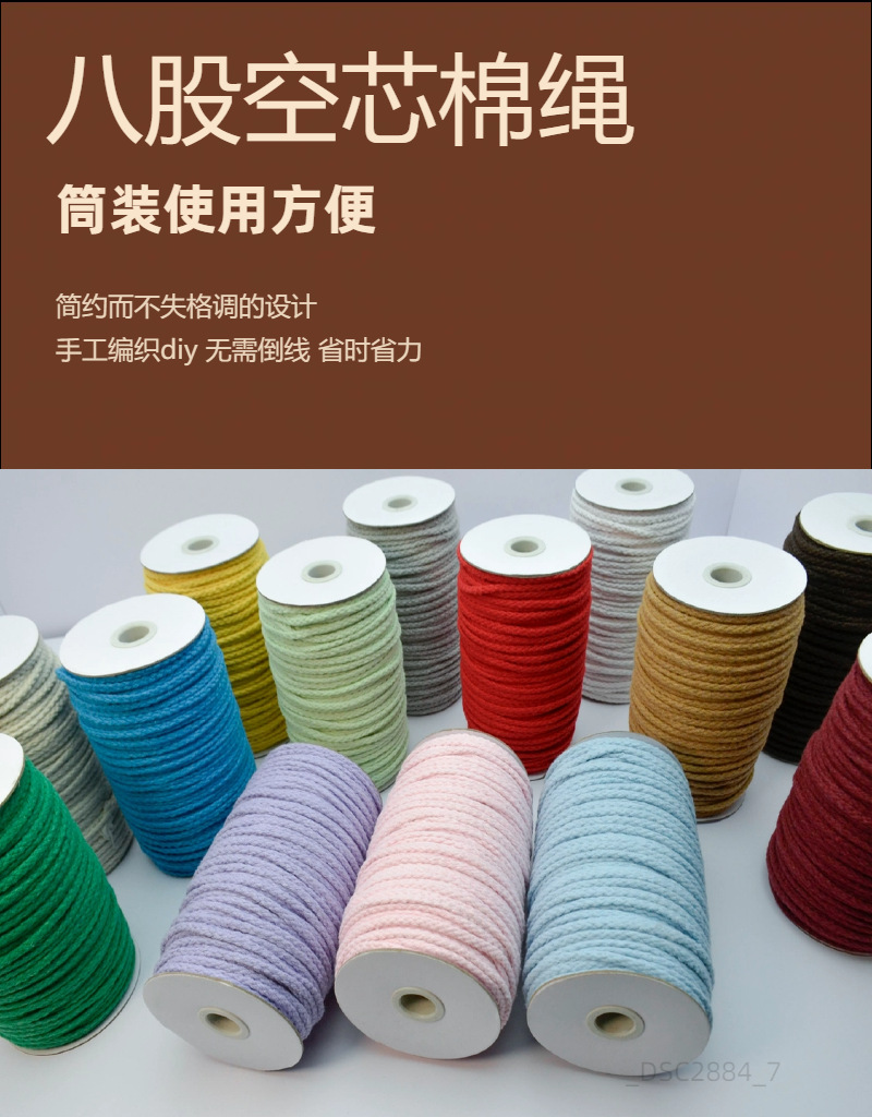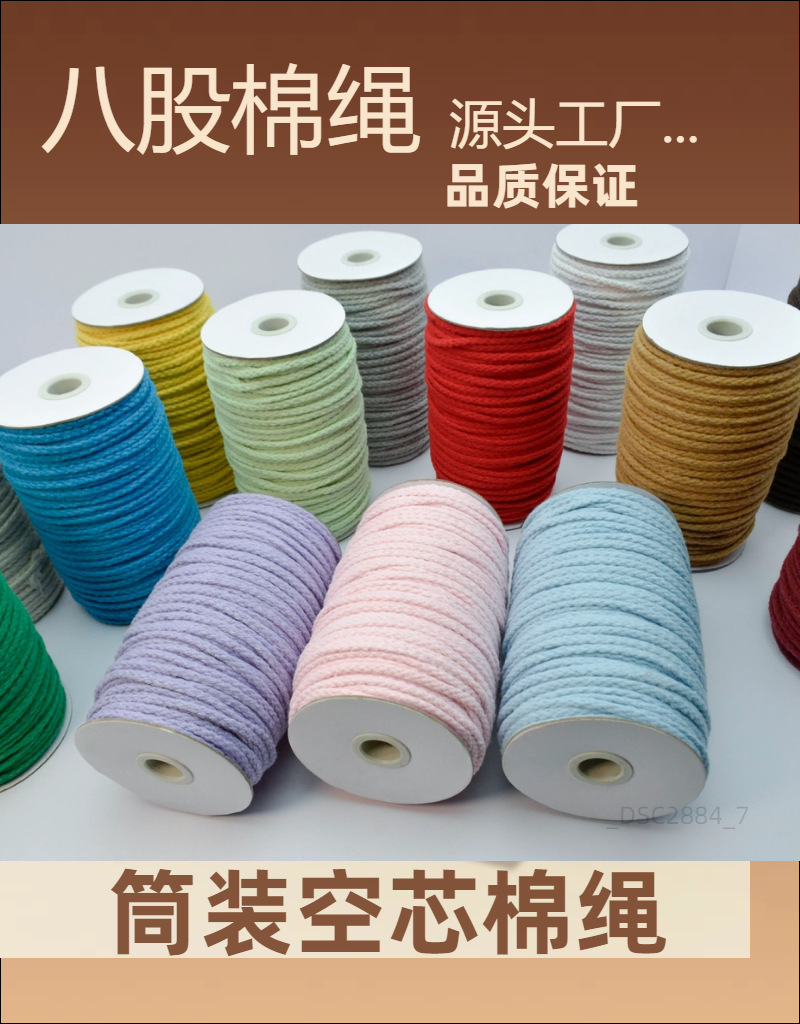 8가닥 속이 빈 면끈 5mm 컬러 면실 DIY 의류 부자재 공장 DIY 원형끈 조임끈스토어 가기