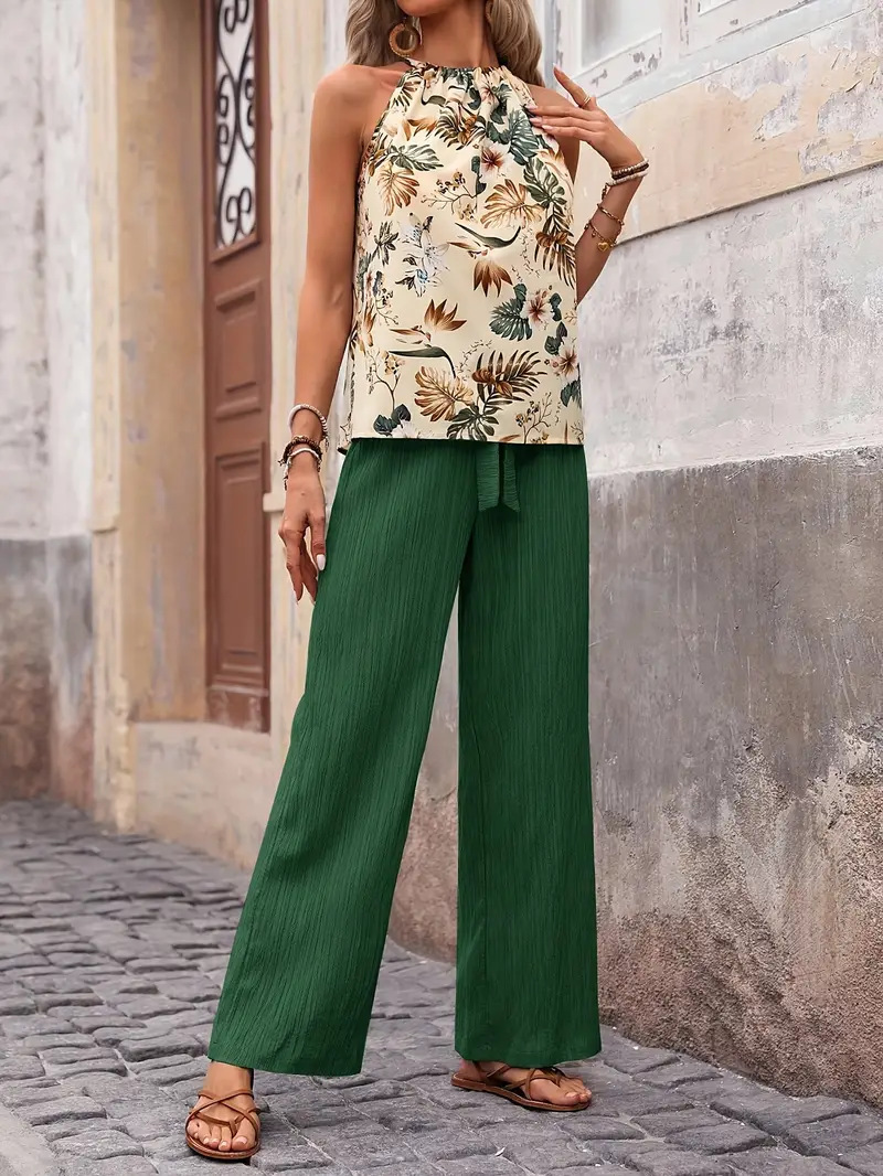 Spot 2025 유럽과 미국의 인기 독립 웹사이트 크로스보더 아마존 민소매 탑과 바지 고급 투피스 세트