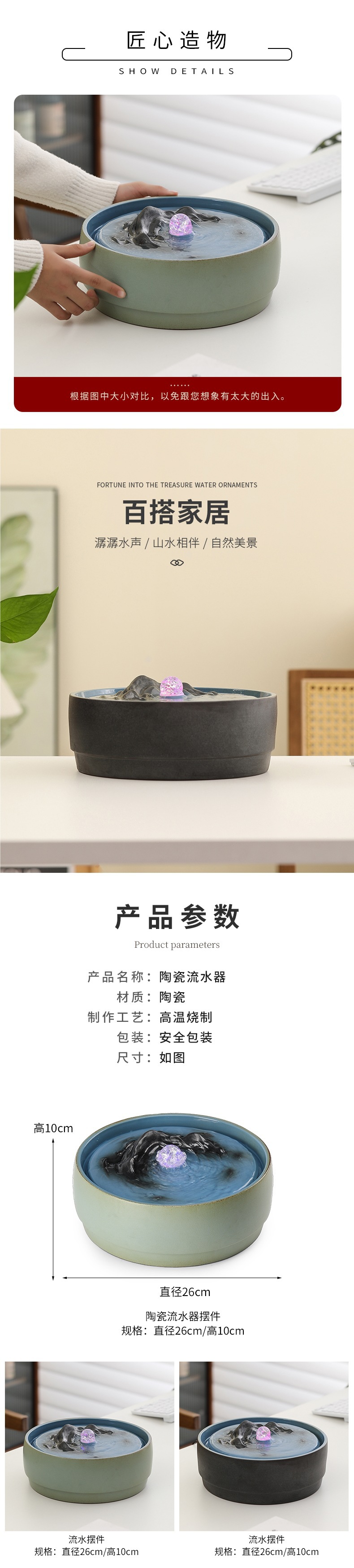 순환수원 분수 Qianli Jiangshan 거실 찻집 데스크탑 흐르는 물 장식품 사무실 개업 집들이 선물