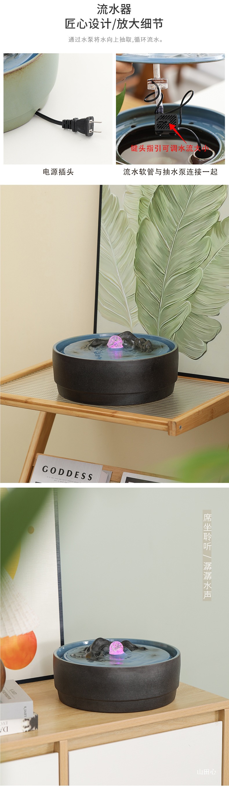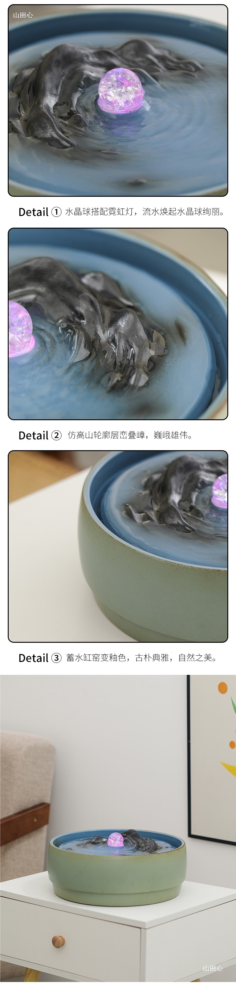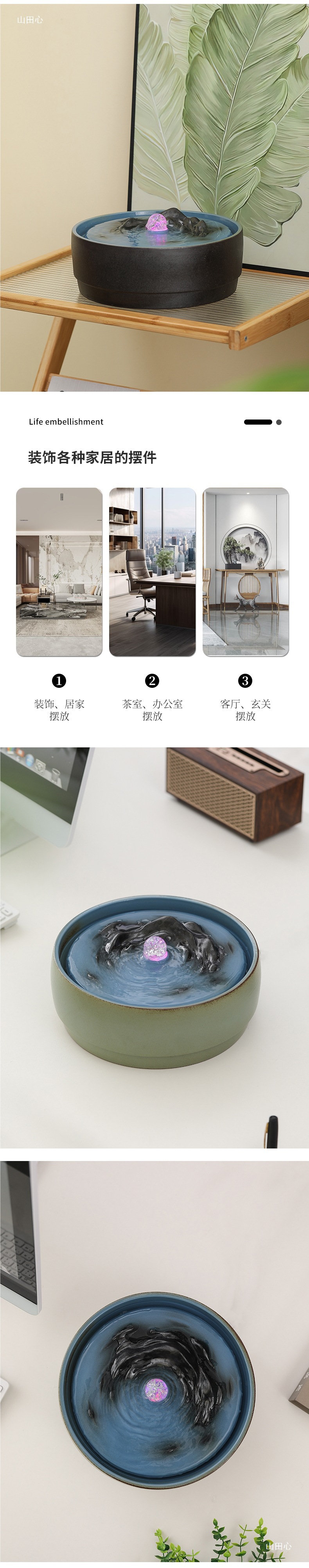 순환수원 분수 Qianli Jiangshan 거실 찻집 데스크탑 흐르는 물 장식품 사무실 개업 집들이 선물스토어 가기
