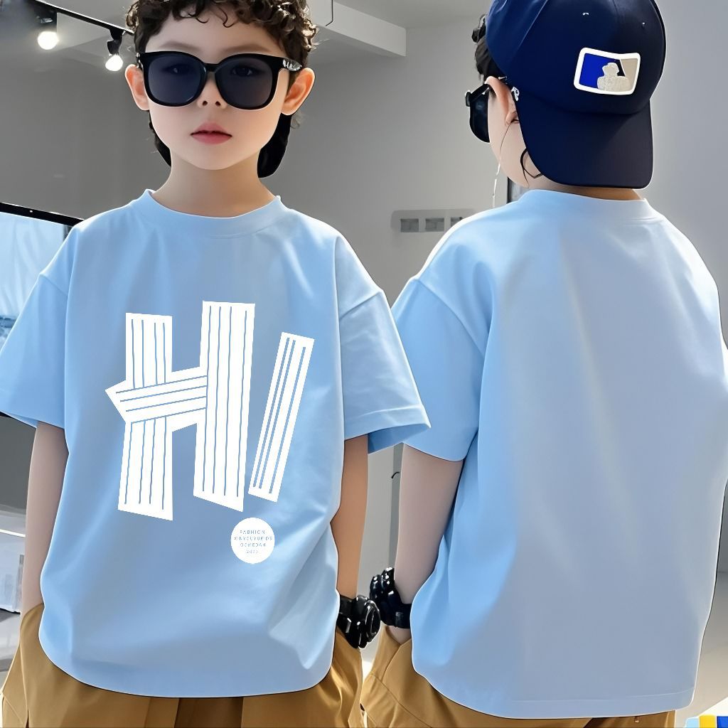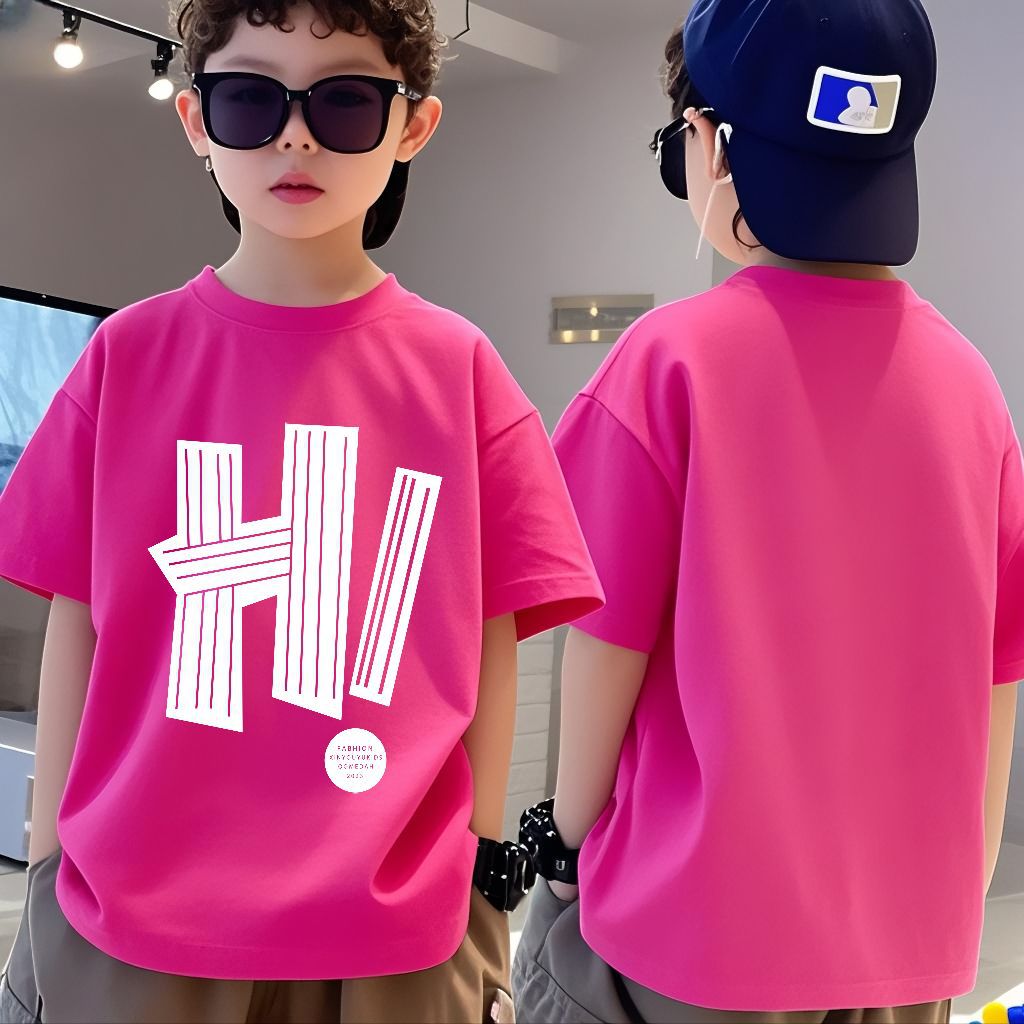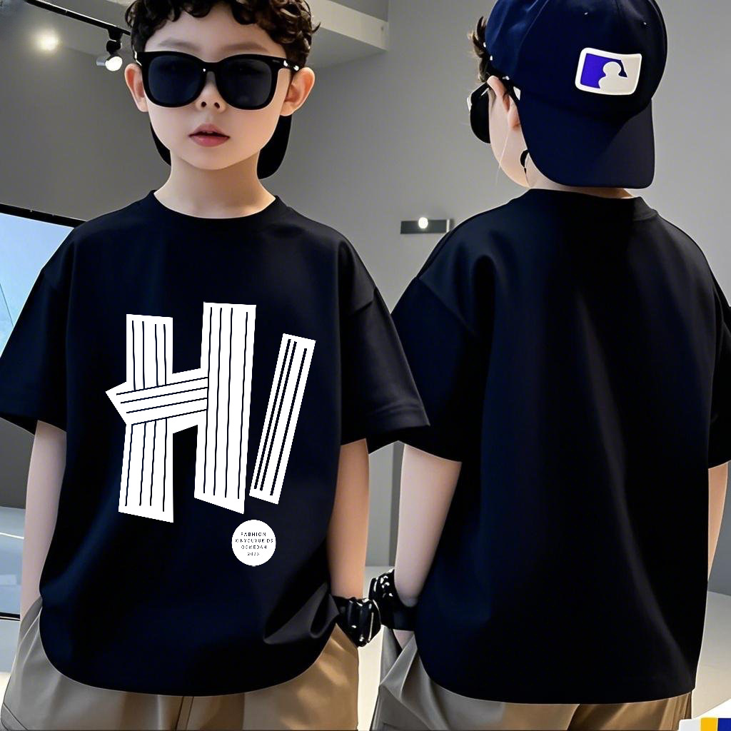 소년 반팔 코튼 티셔츠 여름 새로운 스타일 중대형 어린이 느슨한 라운드 넥 캐주얼 어린이 소년 반팔 탑스토어 가기