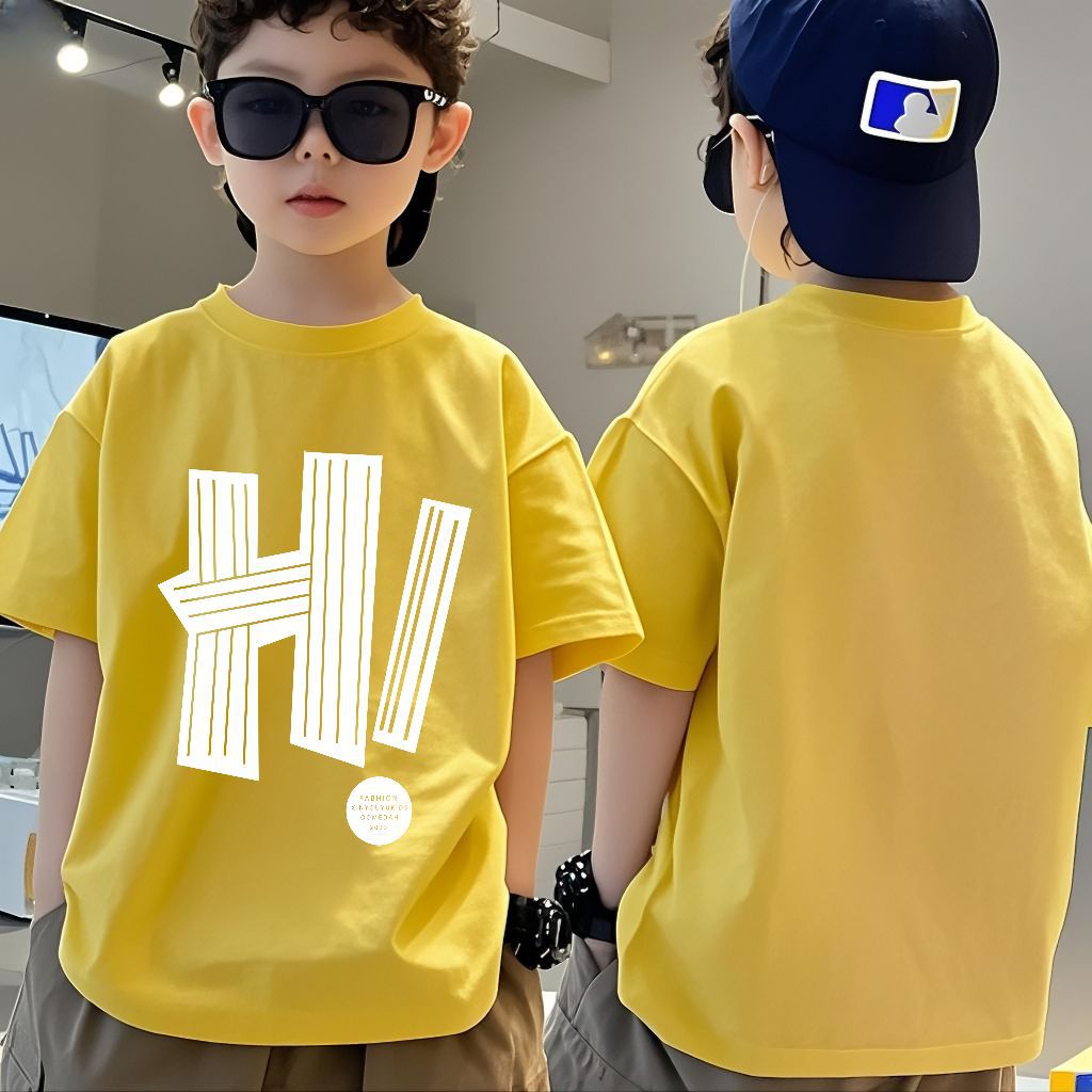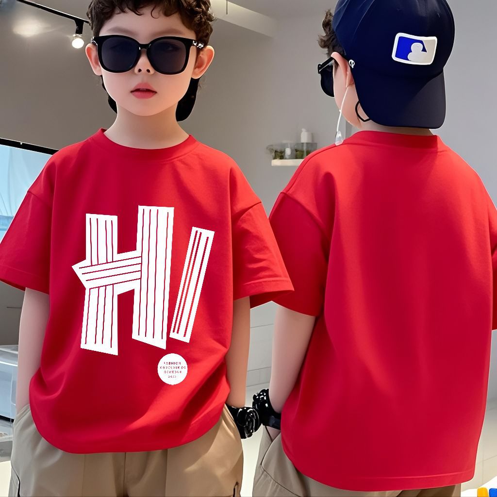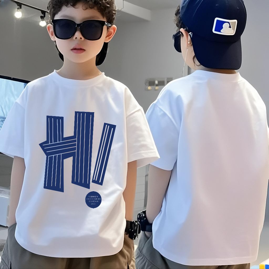소년 반팔 코튼 티셔츠 여름 새로운 스타일 중대형 어린이 느슨한 라운드 넥 캐주얼 어린이 소년 반팔 탑스토어 가기