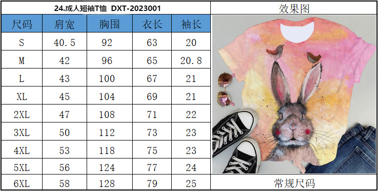 유럽과 미국 국경 새로운 아마존 라운드 넥 짧은 소매 그라디언트 3D 디지털 인쇄 느슨한 플러스 사이즈 여성 정상스토어 가기