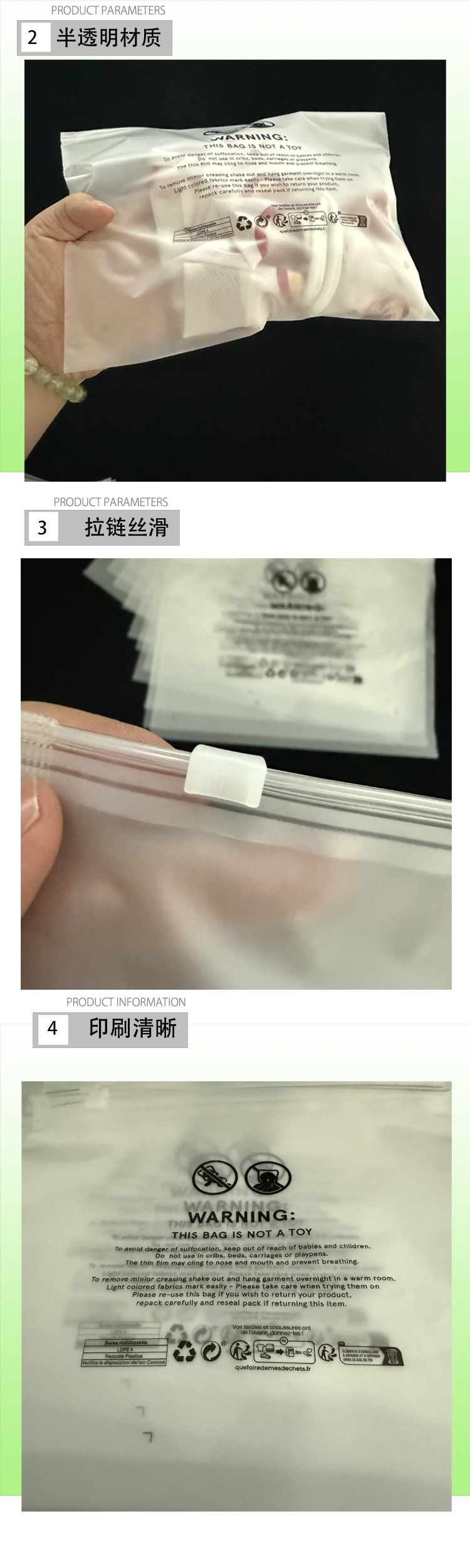 재고 프로스트 CPE 지퍼 가방 프로스트 반투명 수영복 가방 베이비 비키니 의류 포장 속옷 팬티