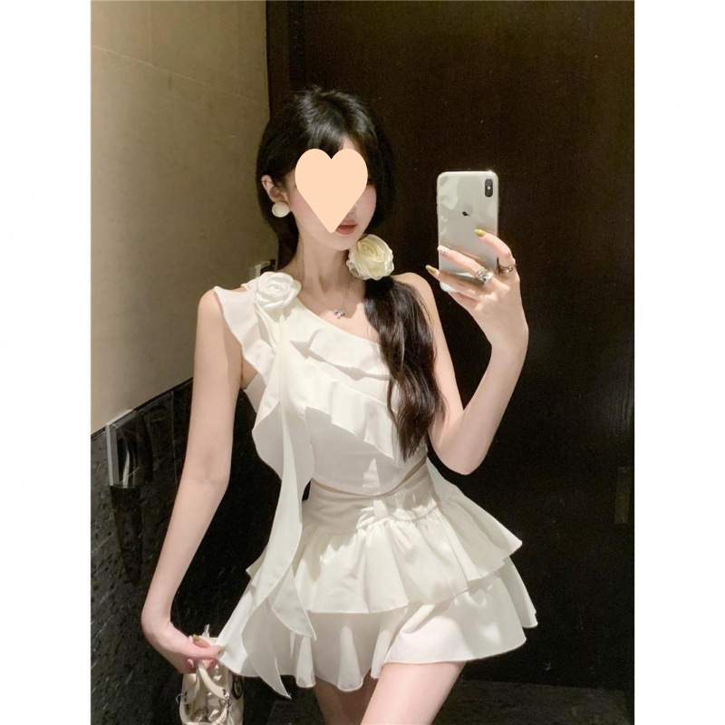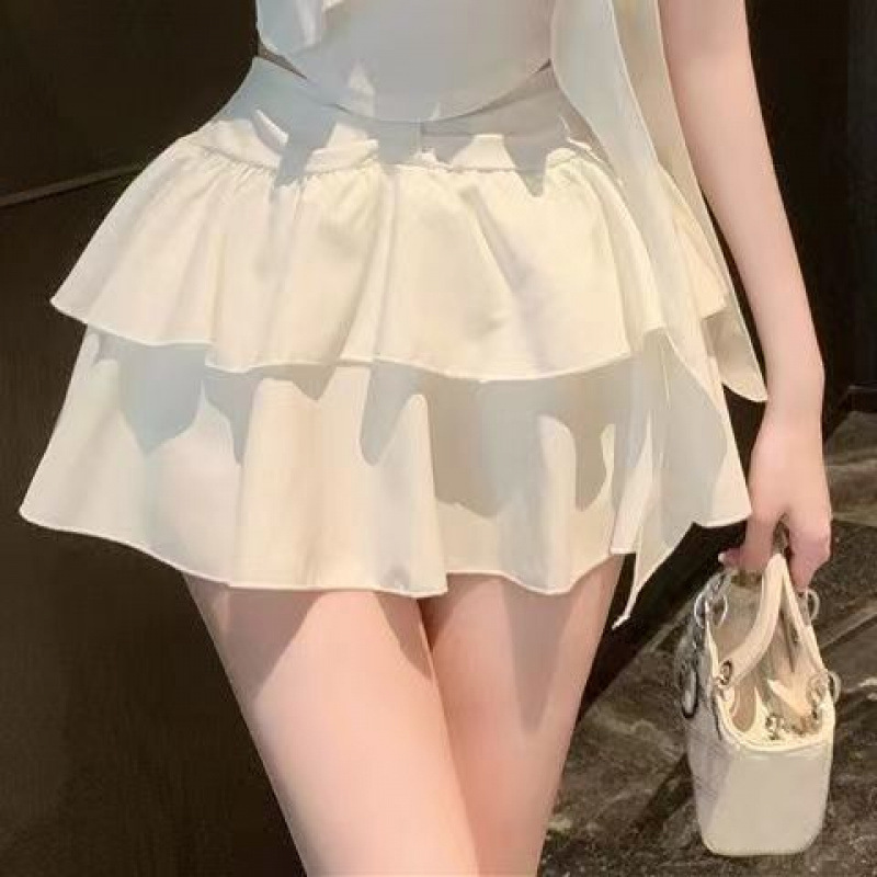 여름 여성을 위한 달콤한 핫걸 슈트 스커트, 순수한 욕망 서스펜더, 주름 케이크 스커트 투피스 세트