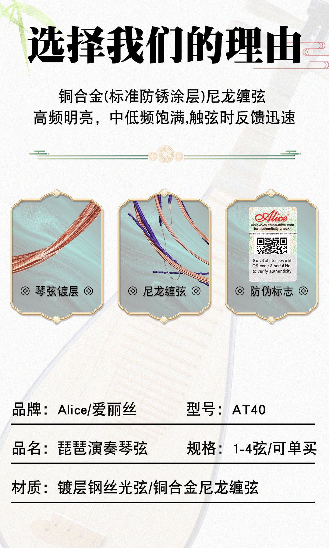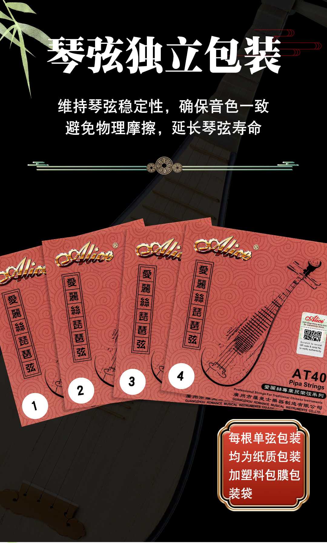 앨리스 비파 현 AT40 전문 1현 비파 현 1현 2현 3현 4현 단일 느슨한 현 전체 현 세트스토어 가기