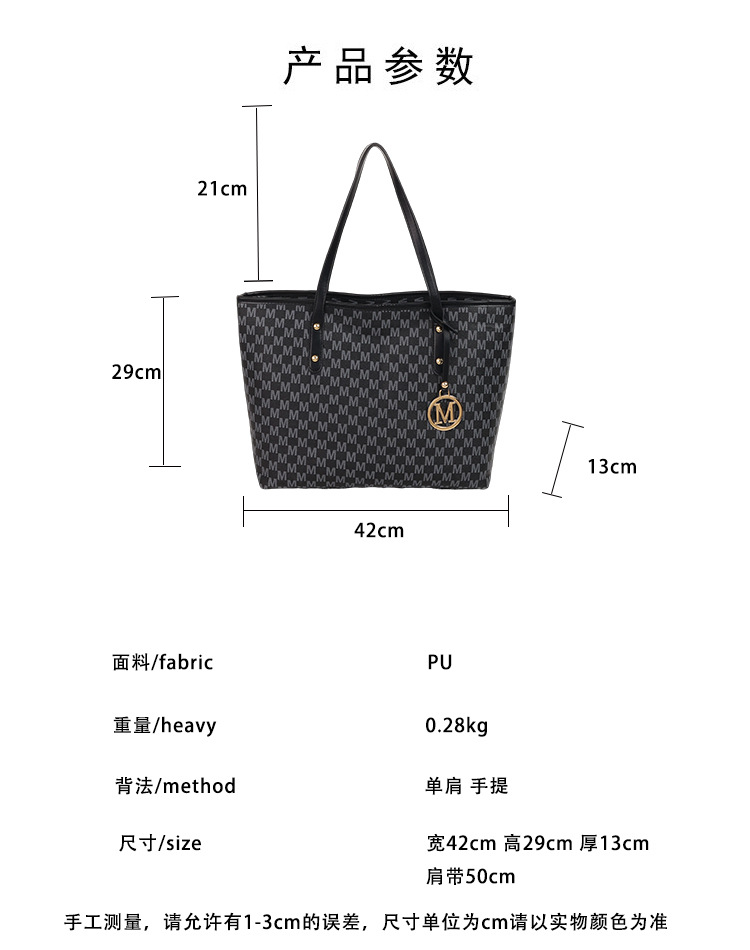 하이 엔드 센스 백 통근 토트 백 여성 2025 새로운 패션 패션 패션 편지 어깨 가방 대용량 핸드백