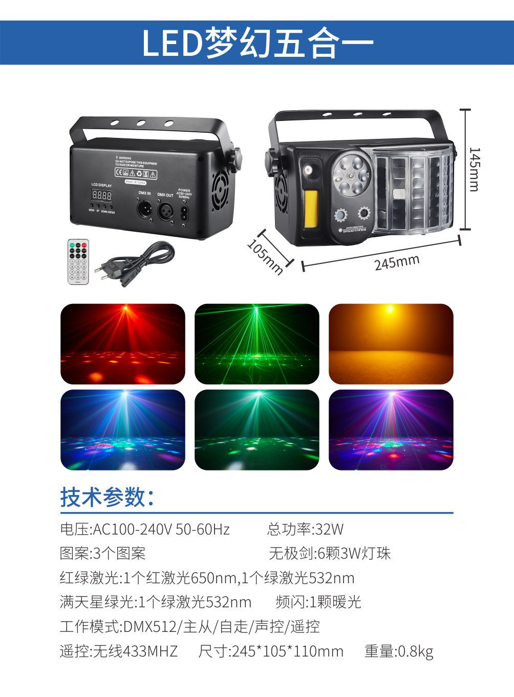 KTV 분위기 빛 음성 제어 색상 빛 회전 빛 패턴 레이저 빛 5 대 1 나비 빛 레이저 빛 디스코 플래시