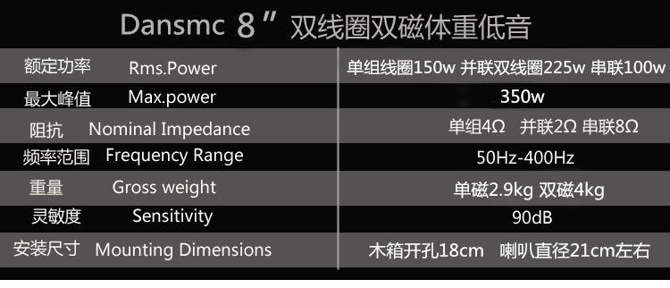 • 8inch 듀얼 자기 듀얼 보이스 코일 225w50 코어