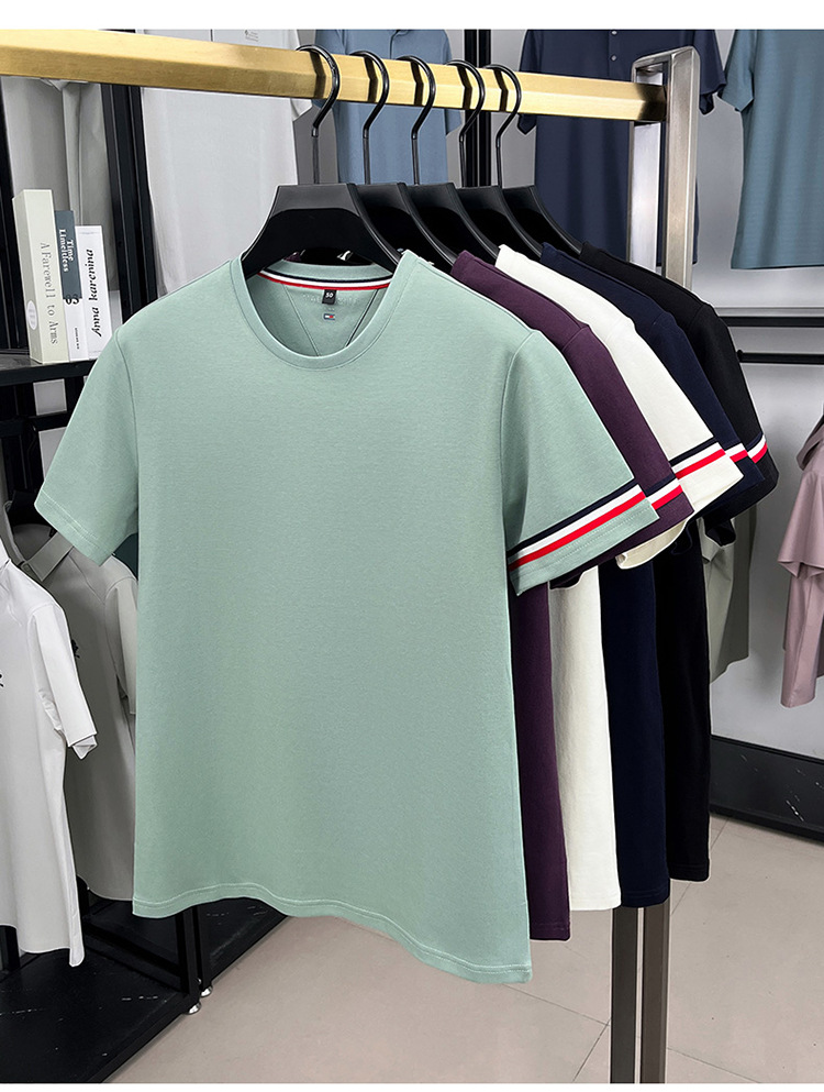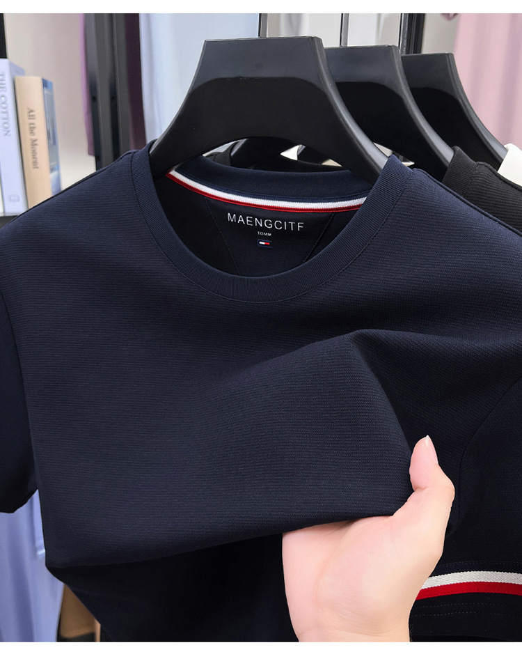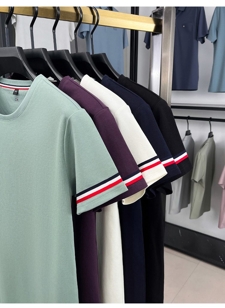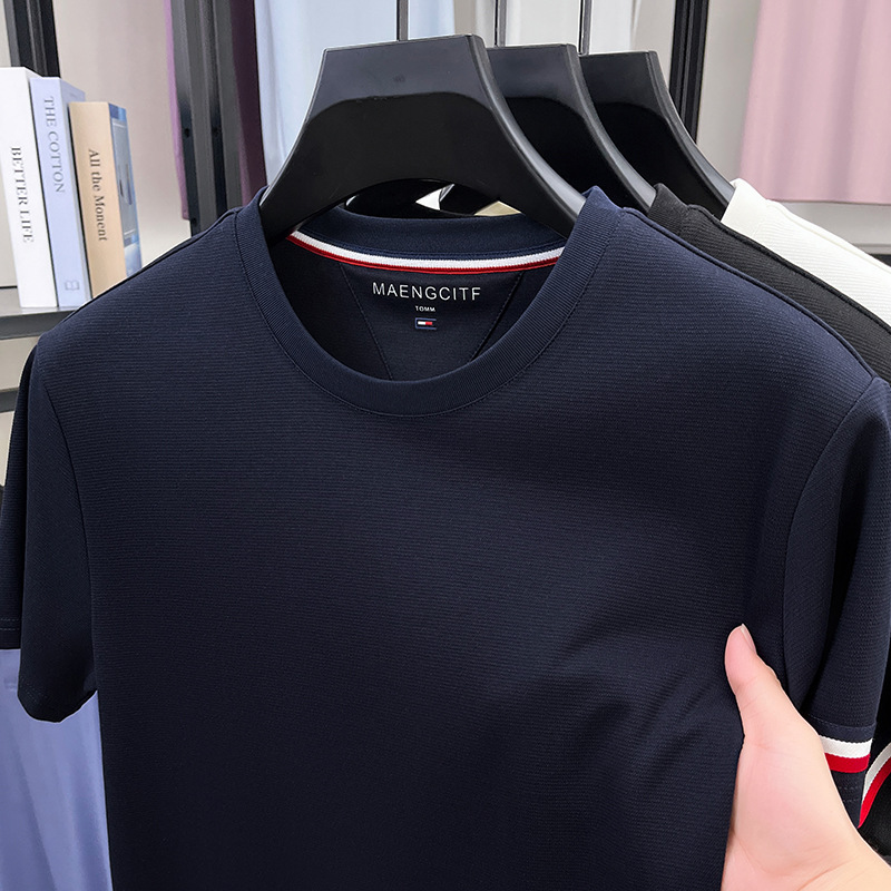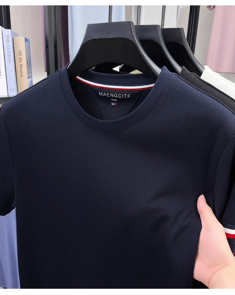 미국 정품 토미 토미 여름 퓨어 코튼 크루 넥 반팔 티셔츠 남성용 캐주얼 솔리드 컬러베이스 셔츠 조커