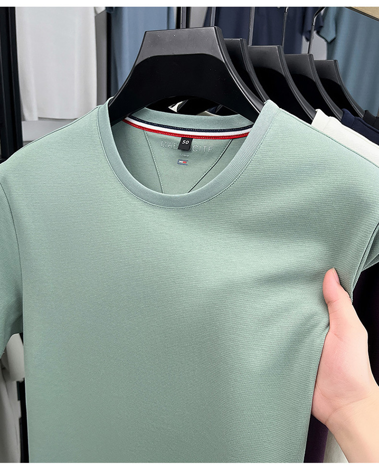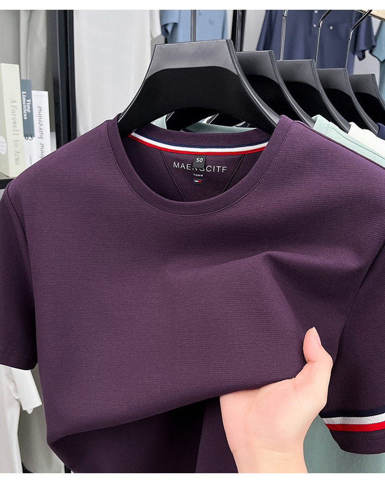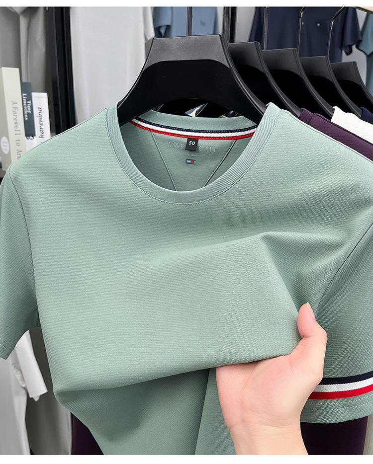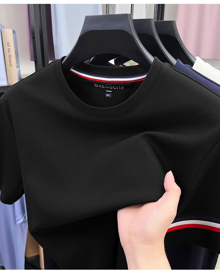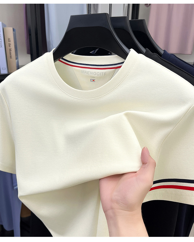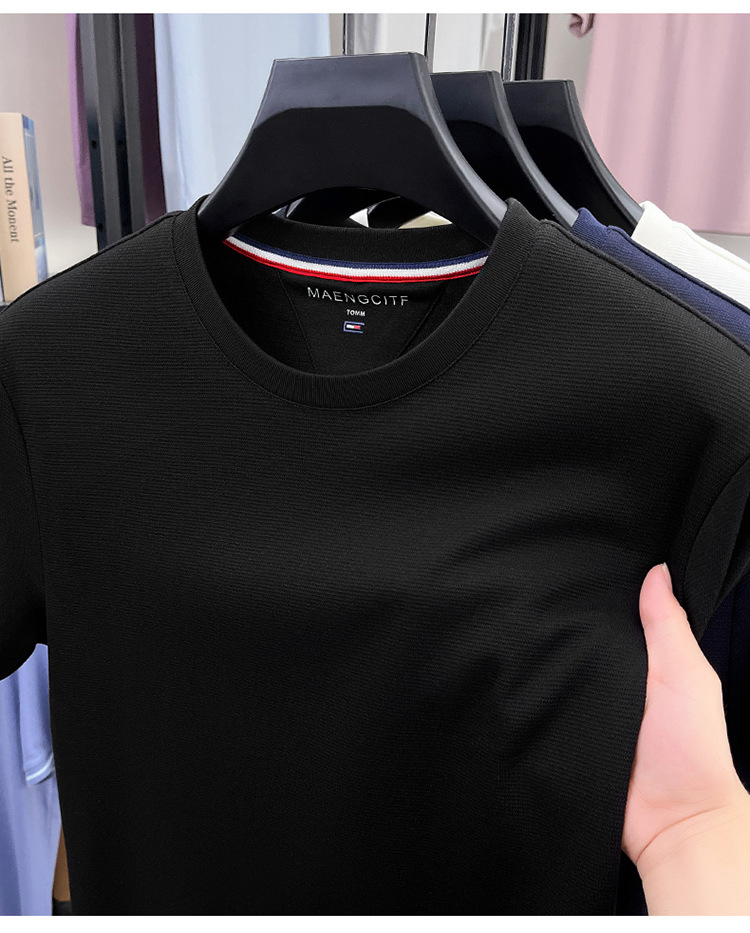 미국 정품 토미 토미 여름 퓨어 코튼 크루 넥 반팔 티셔츠 남성용 캐주얼 솔리드 컬러베이스 셔츠 조커