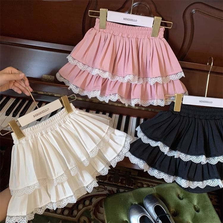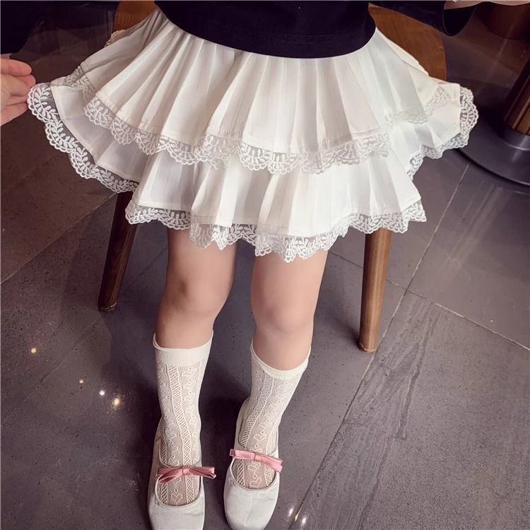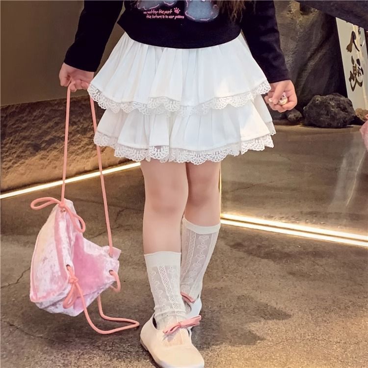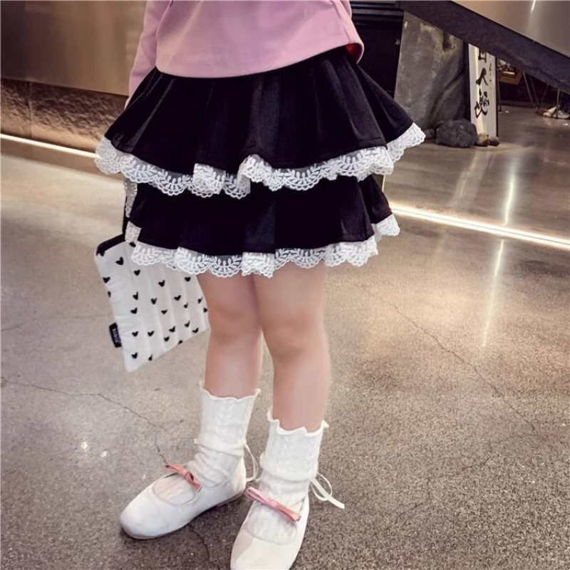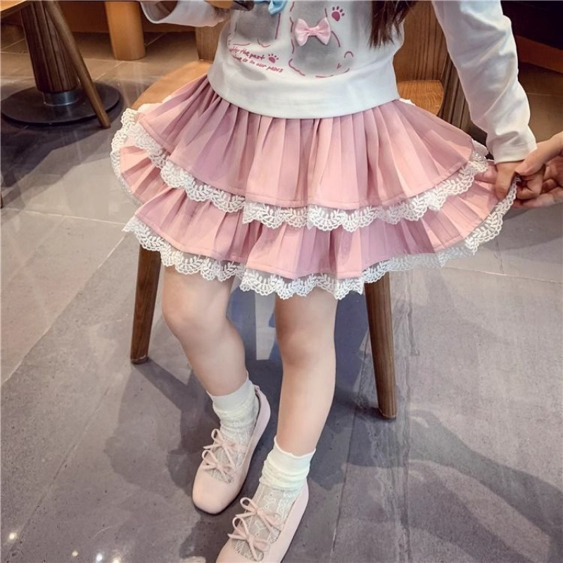 여자 스커트 가을 2025 새로운 스타일 슬림하고 다재다능한 어린 소녀 공주 레이스 스플 라이스 케이크 스커트