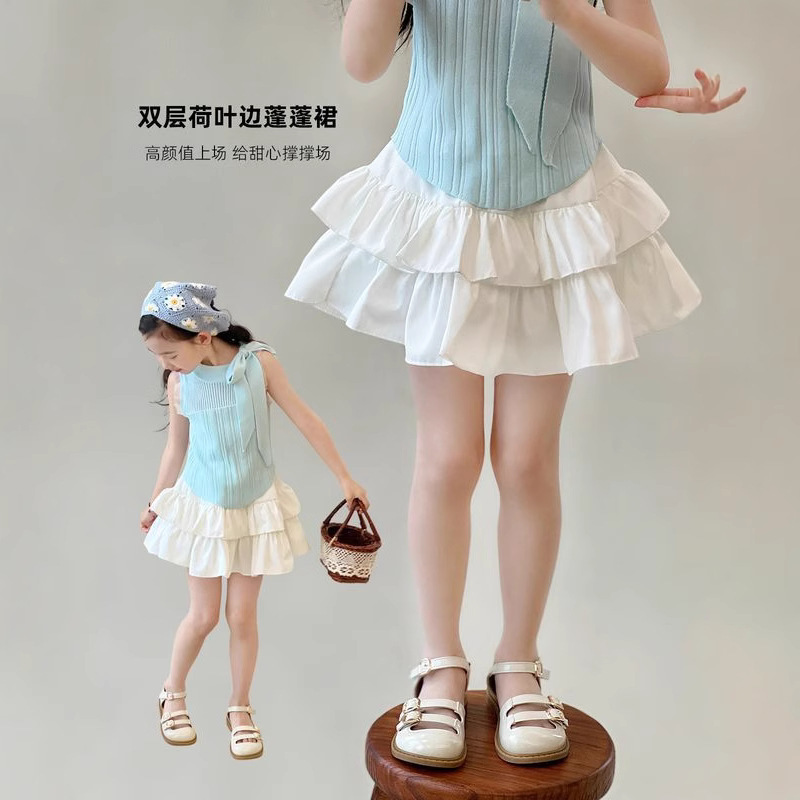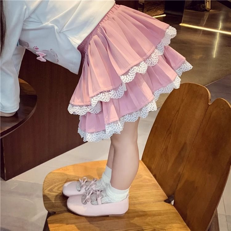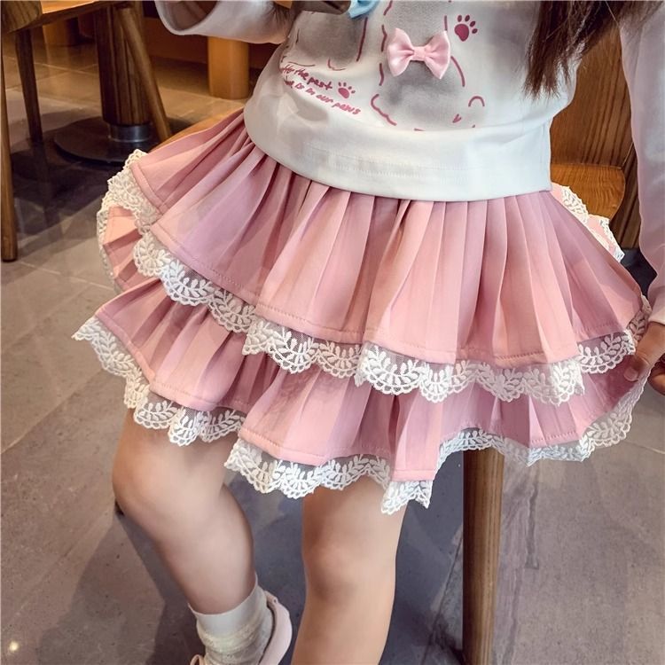 여자 스커트 가을 2025 새로운 스타일 슬림하고 다재다능한 어린 소녀 공주 레이스 스플 라이스 케이크 스커트스토어 가기